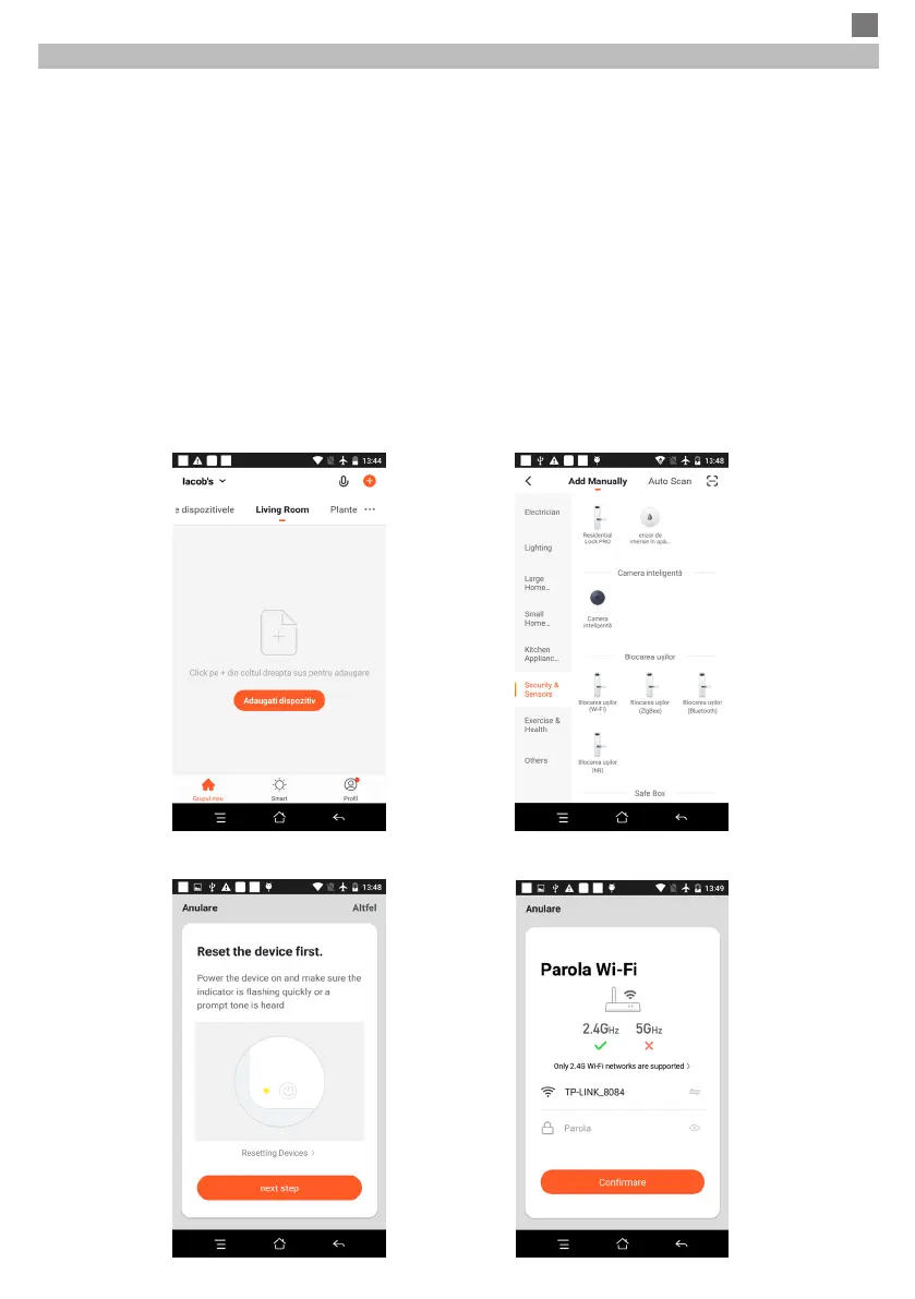 pictograma „+” (figura 1) pe ecranul principal al aplicatiei, selectati „Security & sensors” (figura 2) → „Smart