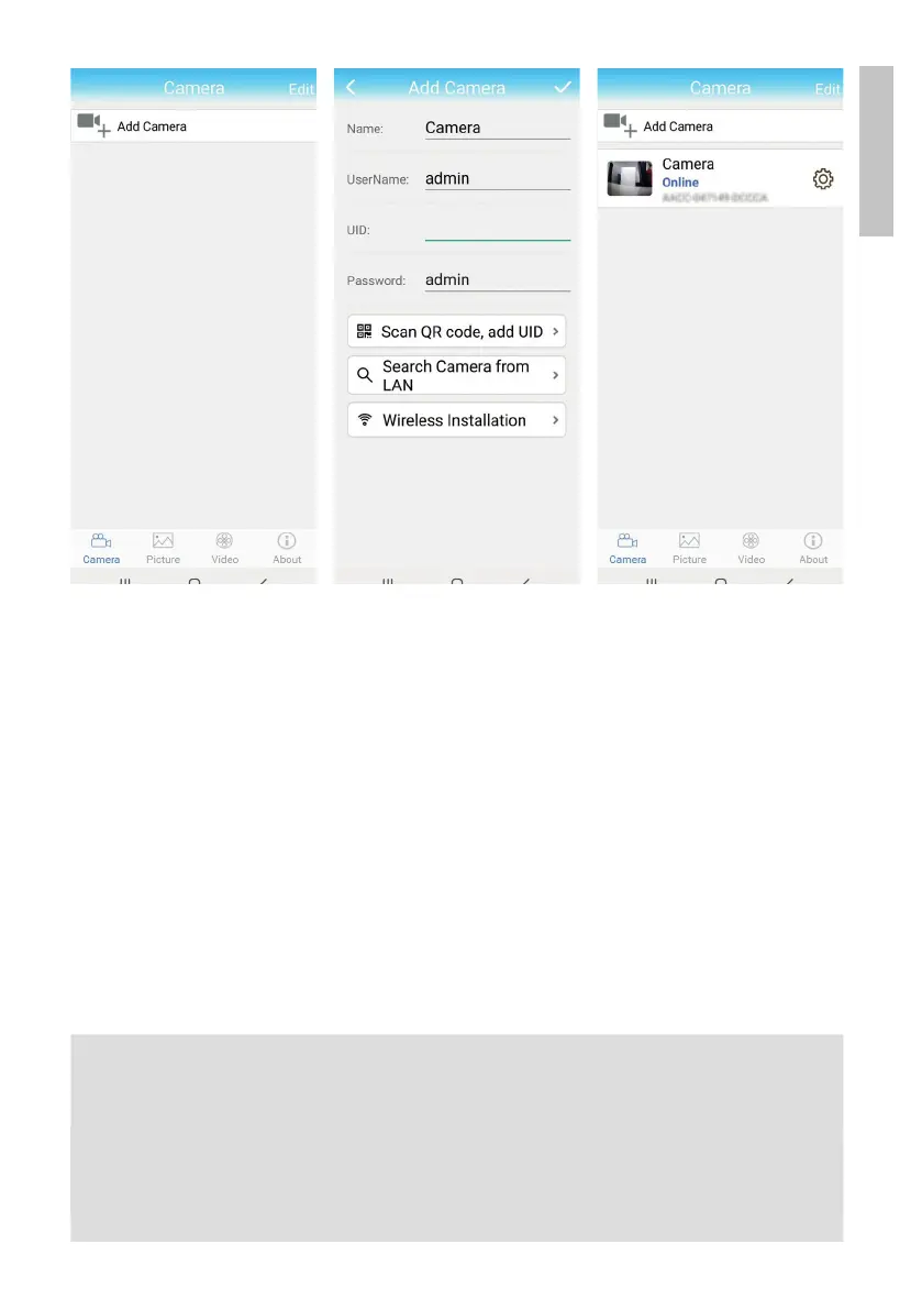 camera din aplicatia pentru smartphone „CamHi” sau din aplicatia pentru