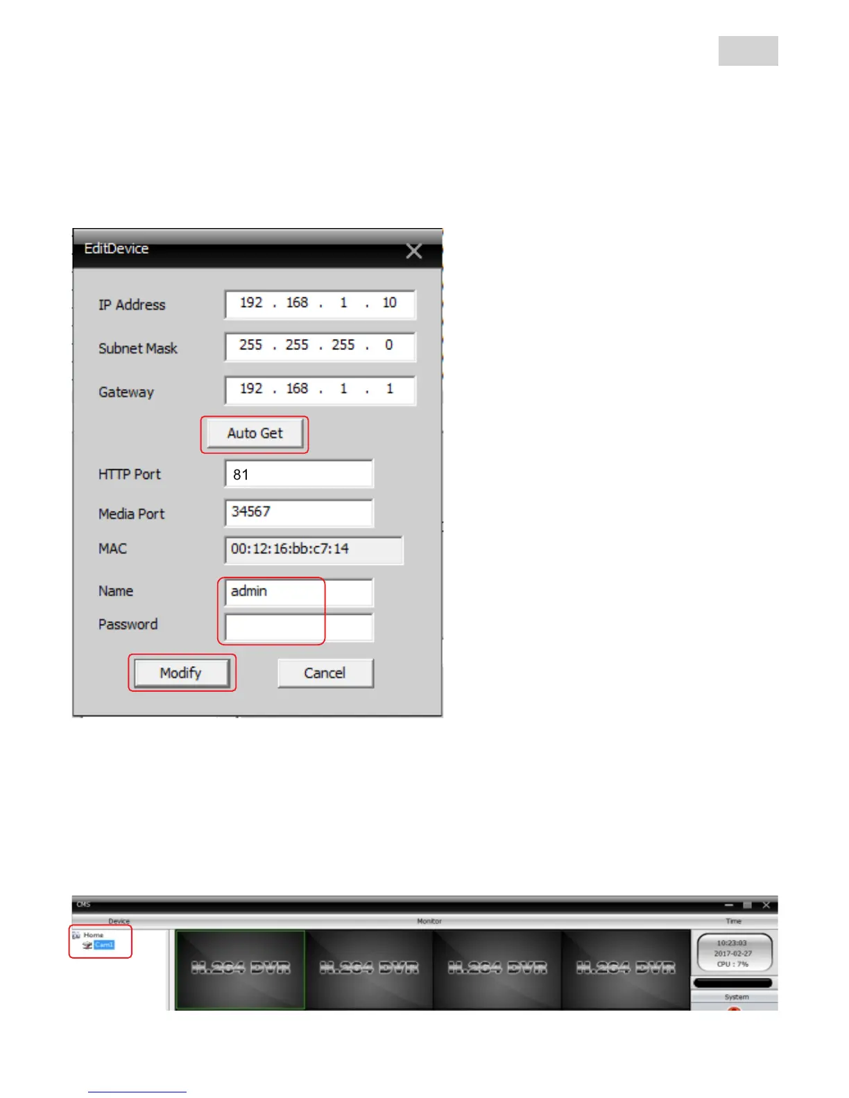 camera (2) (default „Name“=admin and for „password“ leave the field