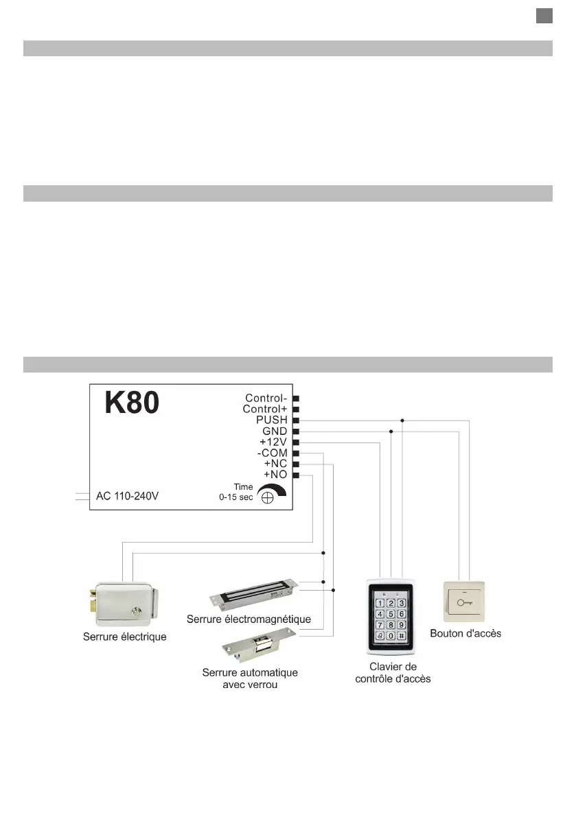 Pour les serrure électromagnétiques avec retenue, la source sera réglée sur 0 seconde pour éviter les brûlures.