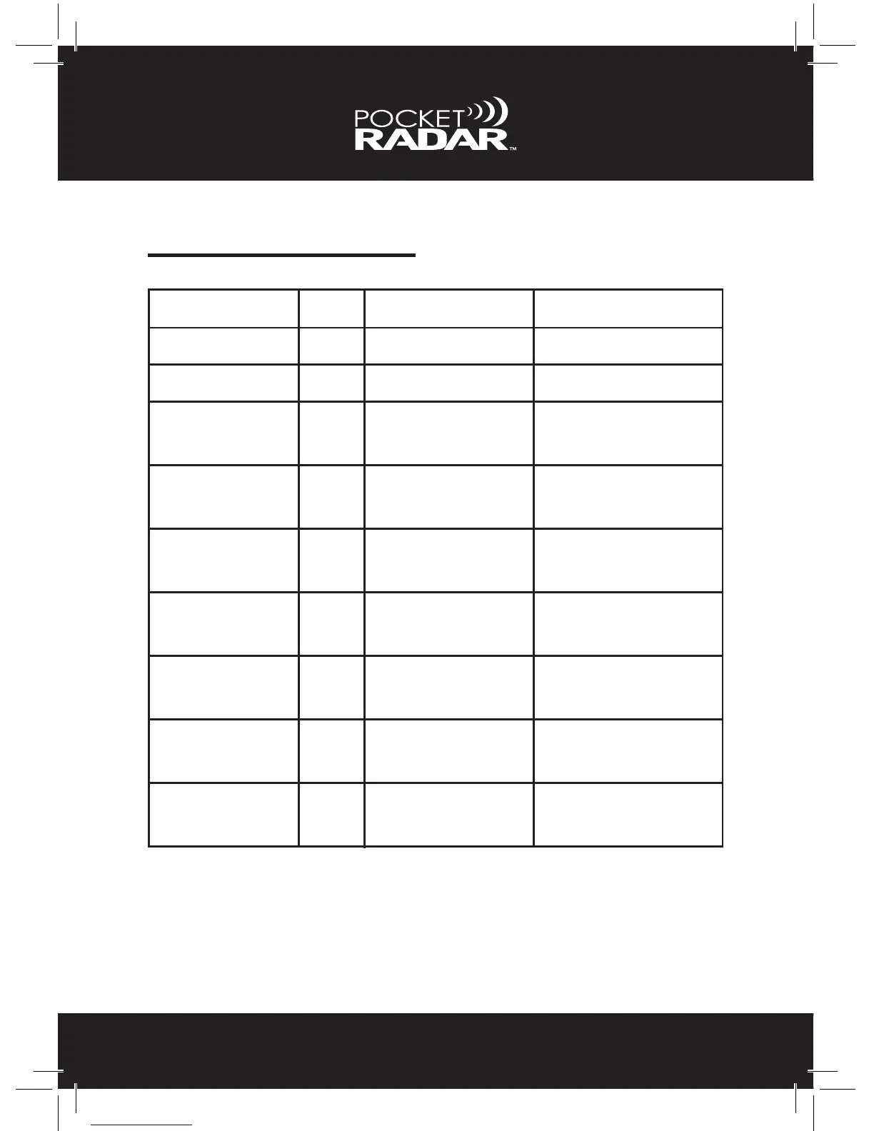 at 888-381-2672 or by e-mail at Support@PocketRadar.com