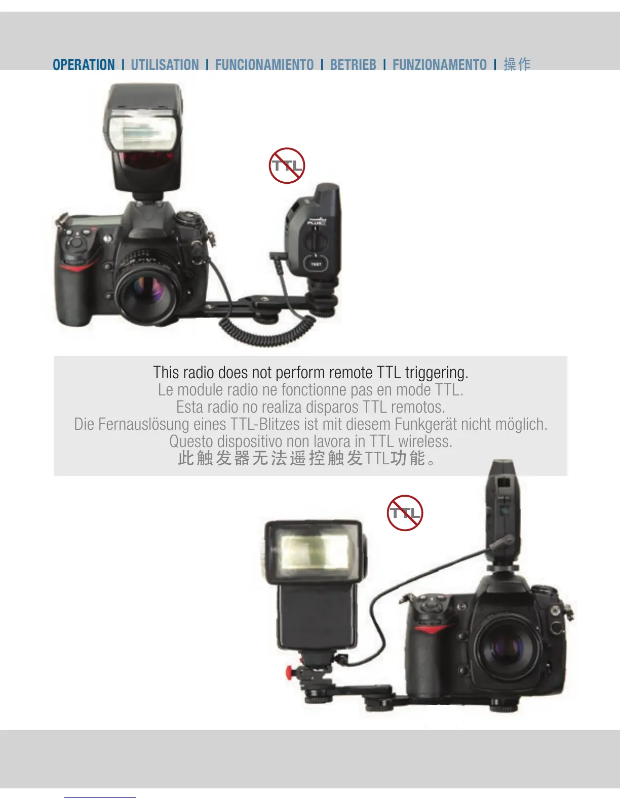 Die Fernauslösung eines TTL-Blitzes ist mit diesem Funkgerät nicht möglich.