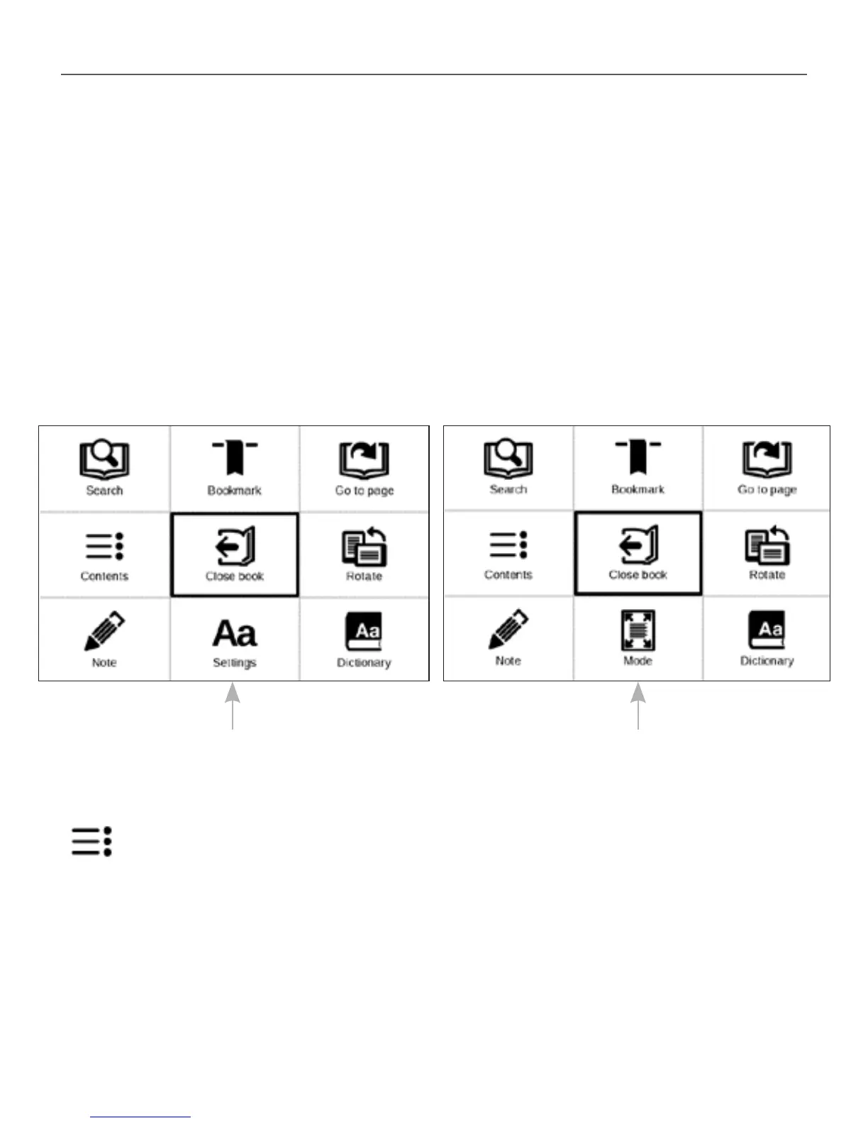 Reading menu for books