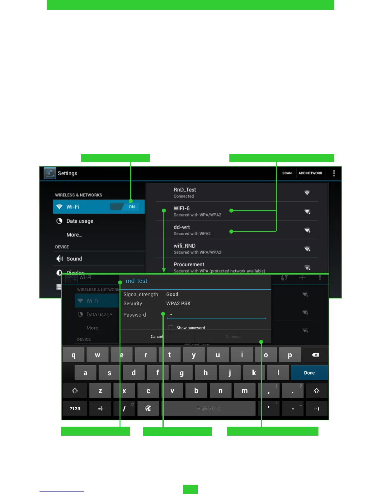 1. Go to Settings > Wireless & networks and slide the Wi-Fi switch to the On
