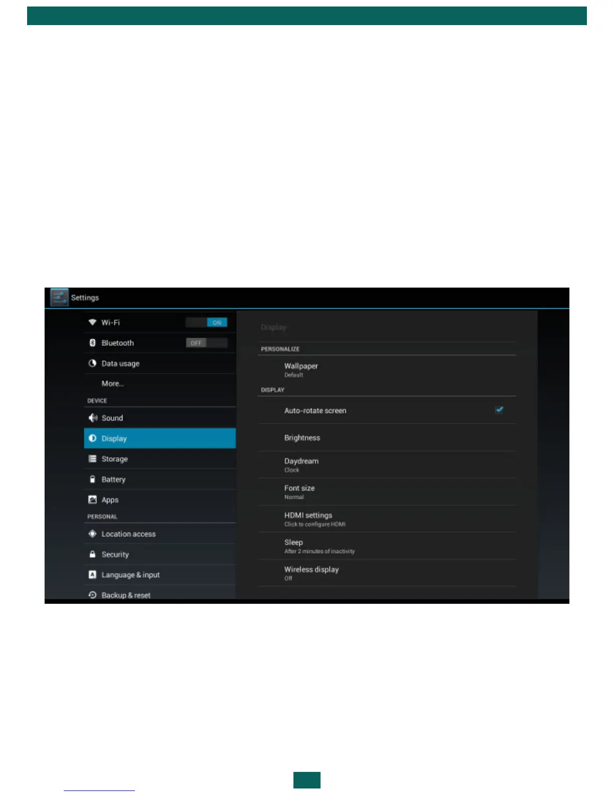 •Sleep – set the delay before the screen goes down to save battery charge;