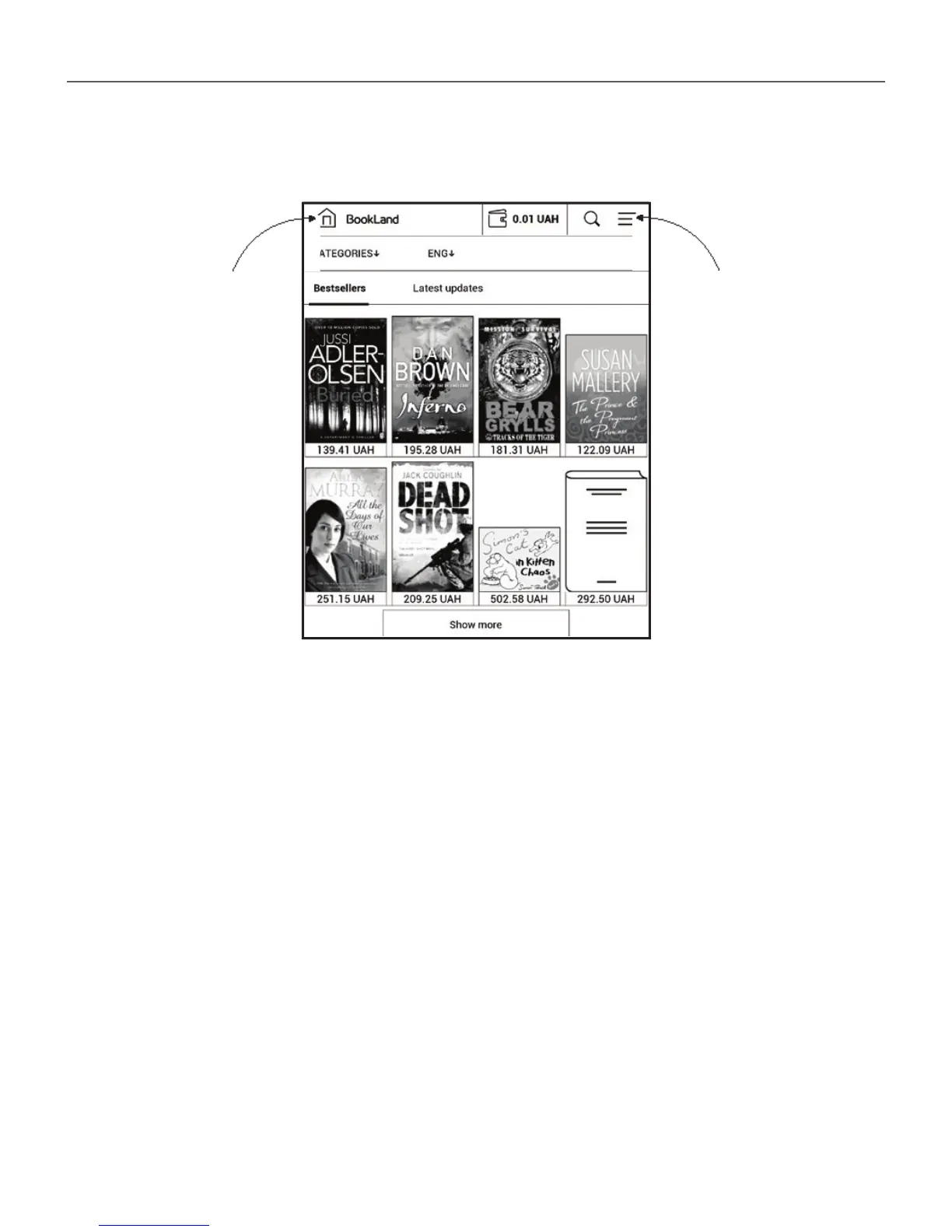 BookLand or directly on the Device using the bank card