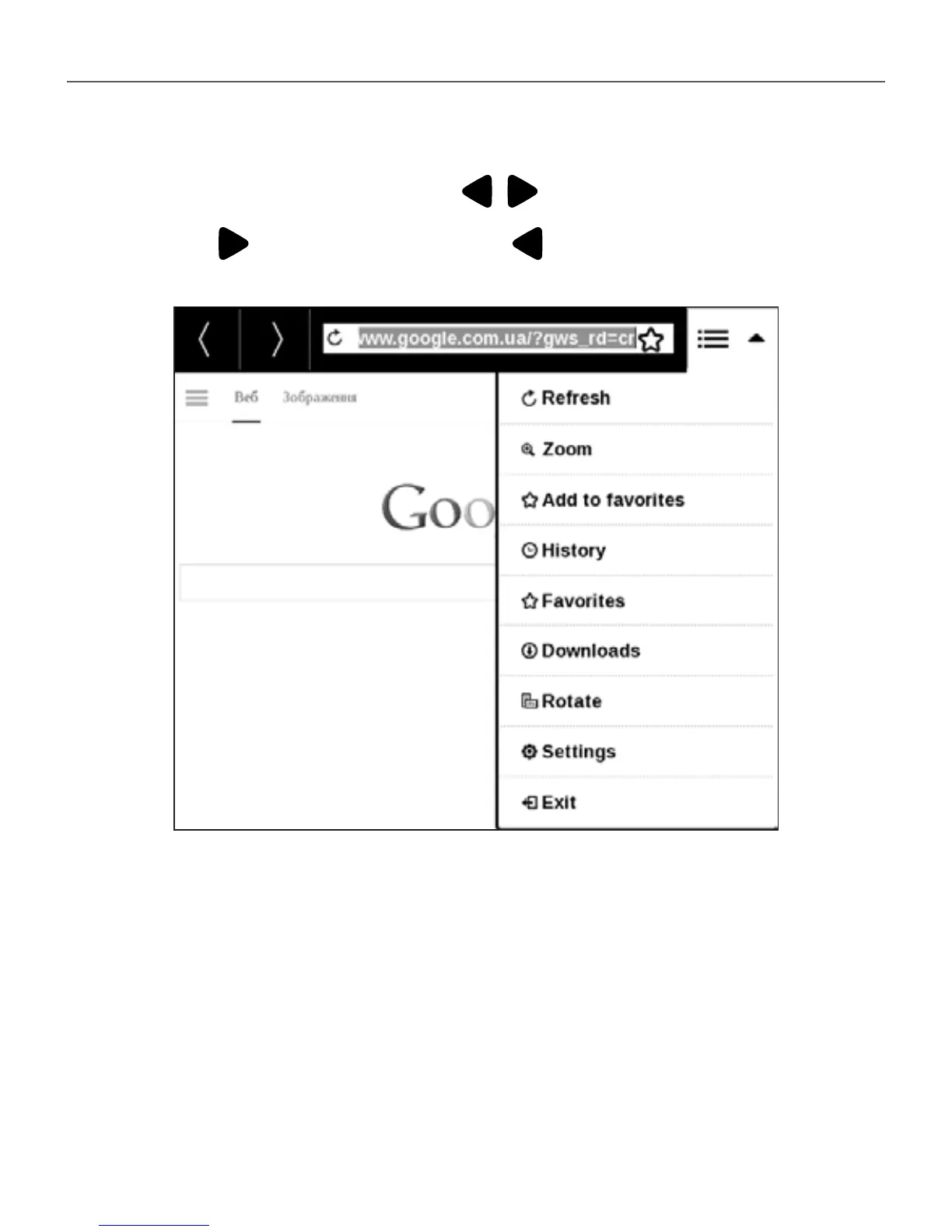vorites, adjust scale of displaying web-pages, rotate a