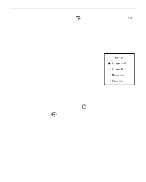 To sort notes, select the icon , or tap on the icon ,