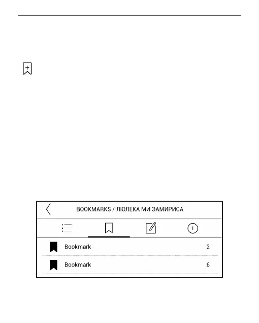 To create a bookmark, touch right top corner of the screen.