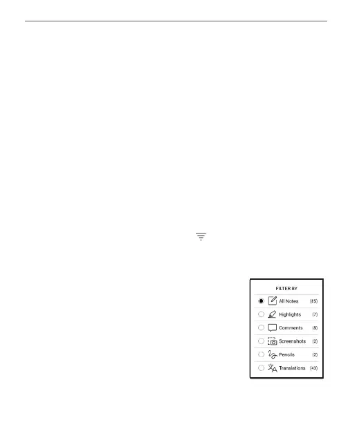 To lter notes select the icon .