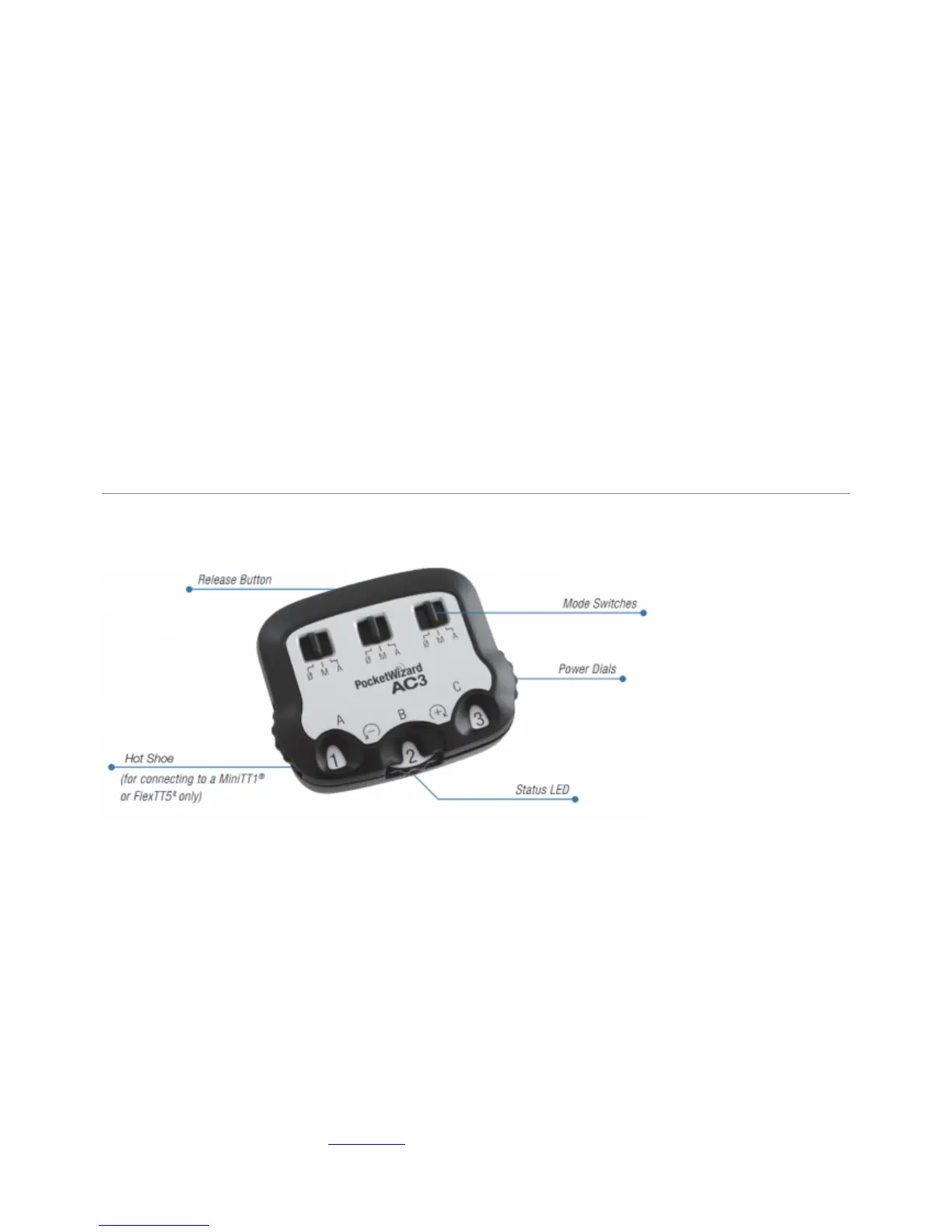 Slide the AC3 onto your on-camera MiniTT1 or FlexTT5. Power on the transmitter, then the1.