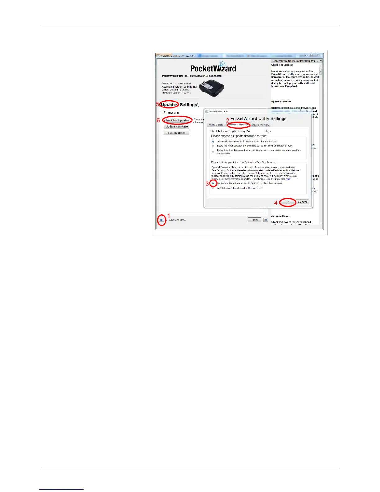open PocketWizard Utility, and
