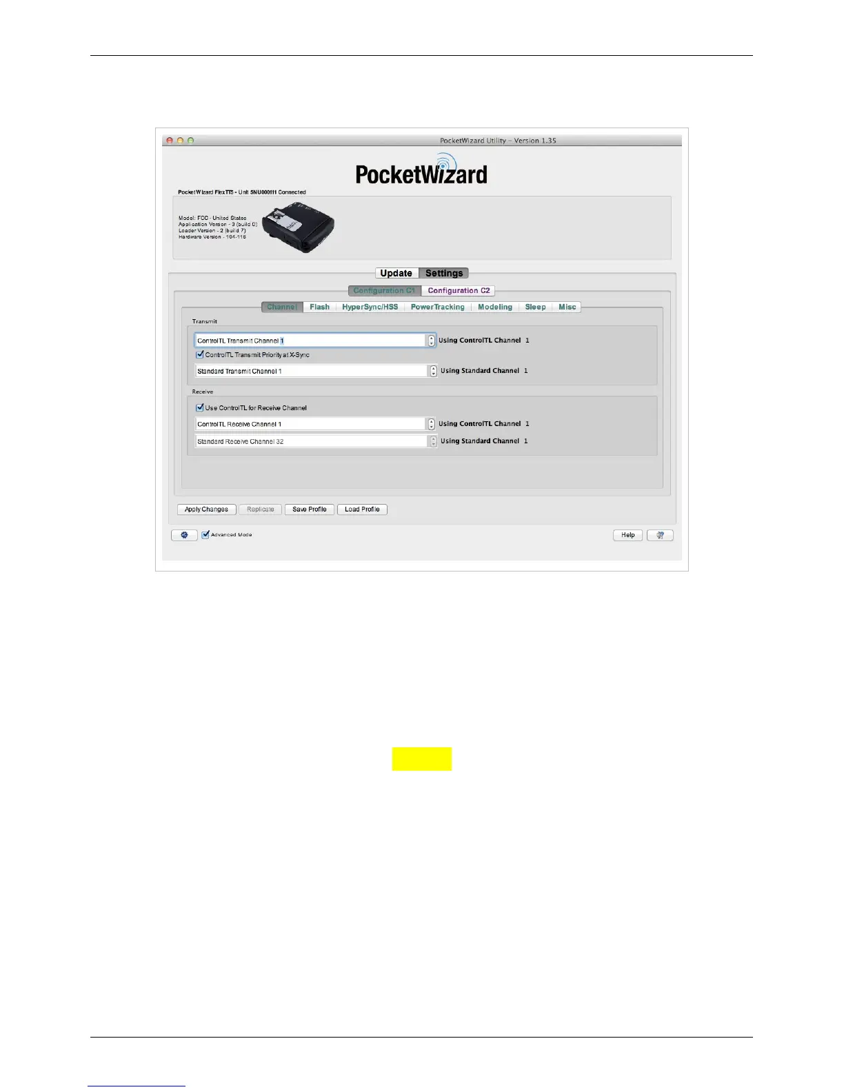 camera's x-sync speed, rather than ControlTL Channel. If you're using a PocketWizard that receives on Standard