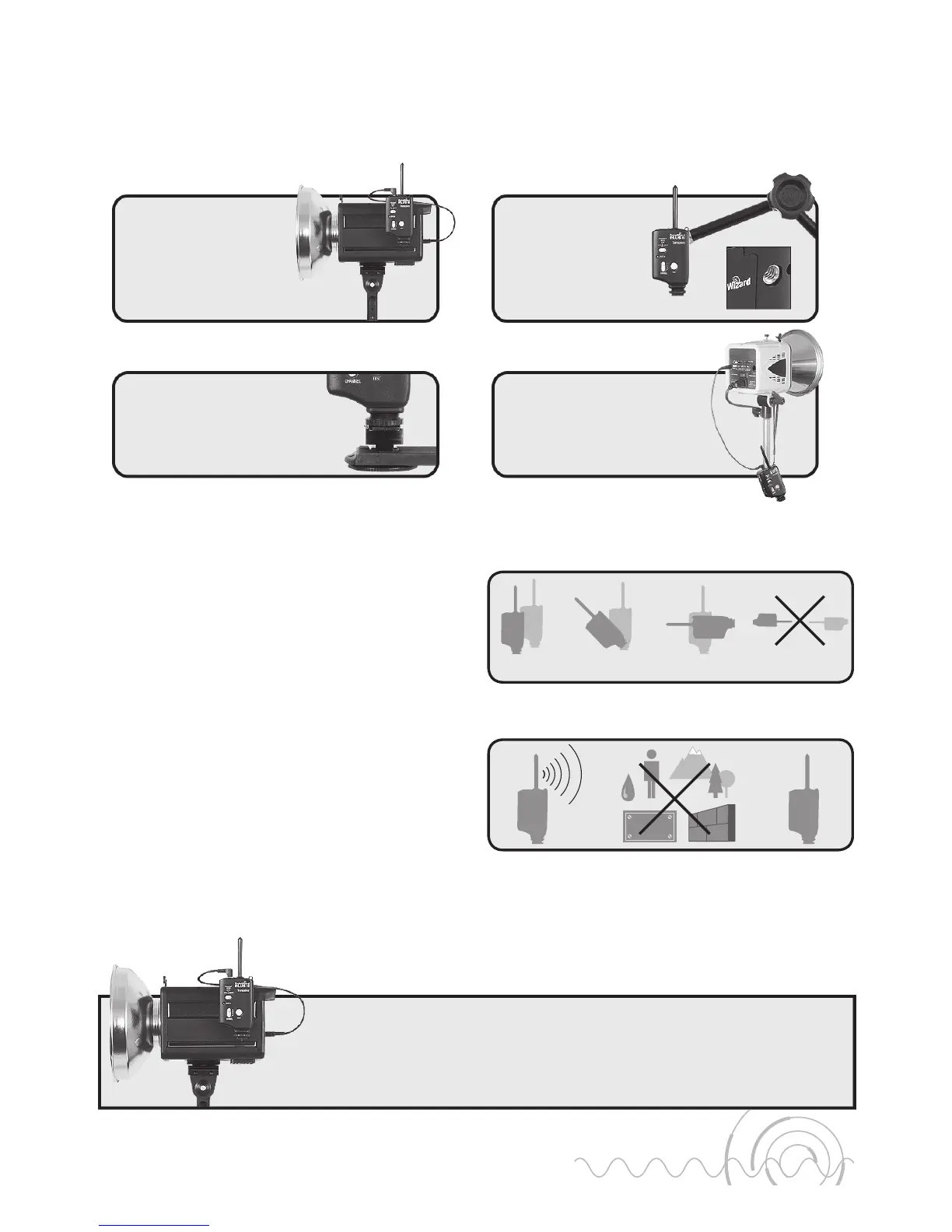 Méthodes pour fixer le Plus II Transceiver à un flash ou un boîtier photo