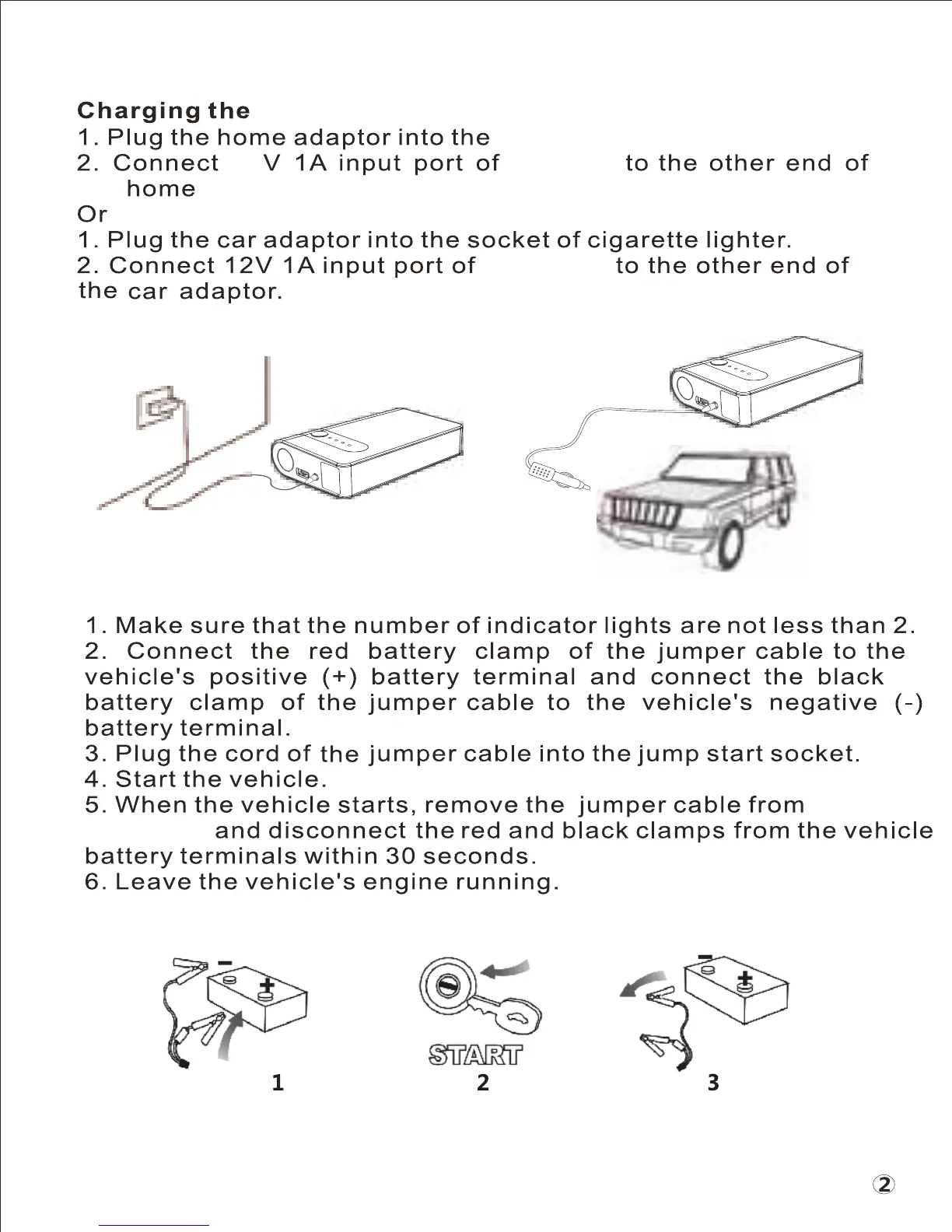 POD X3 - Charging Procedures; Home and Car Charging; Jump Starting Vehicles; Jump Start Process