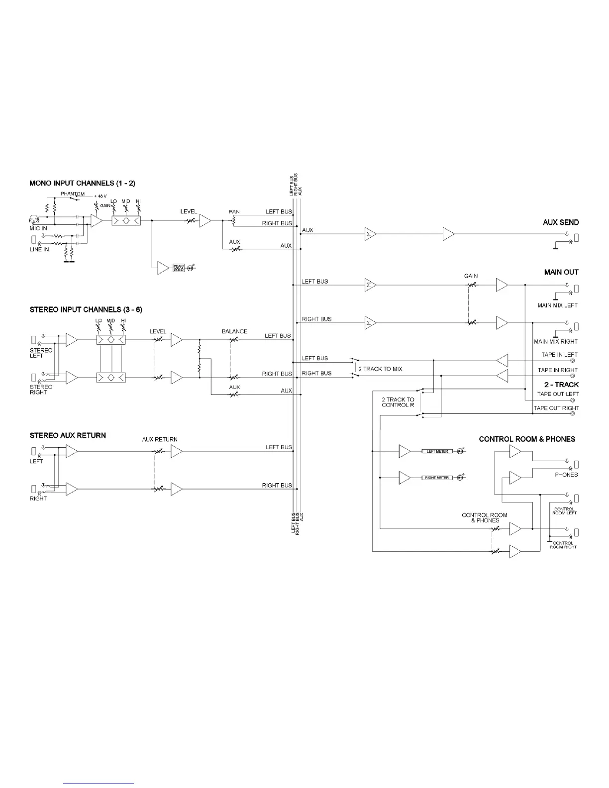 Podium Pro Audio MX602 - MX602 Block Diagram; Mono Input Channel Signal Path; Stereo Input Channel Signal Path; Stereo Aux Return and Send Diagram