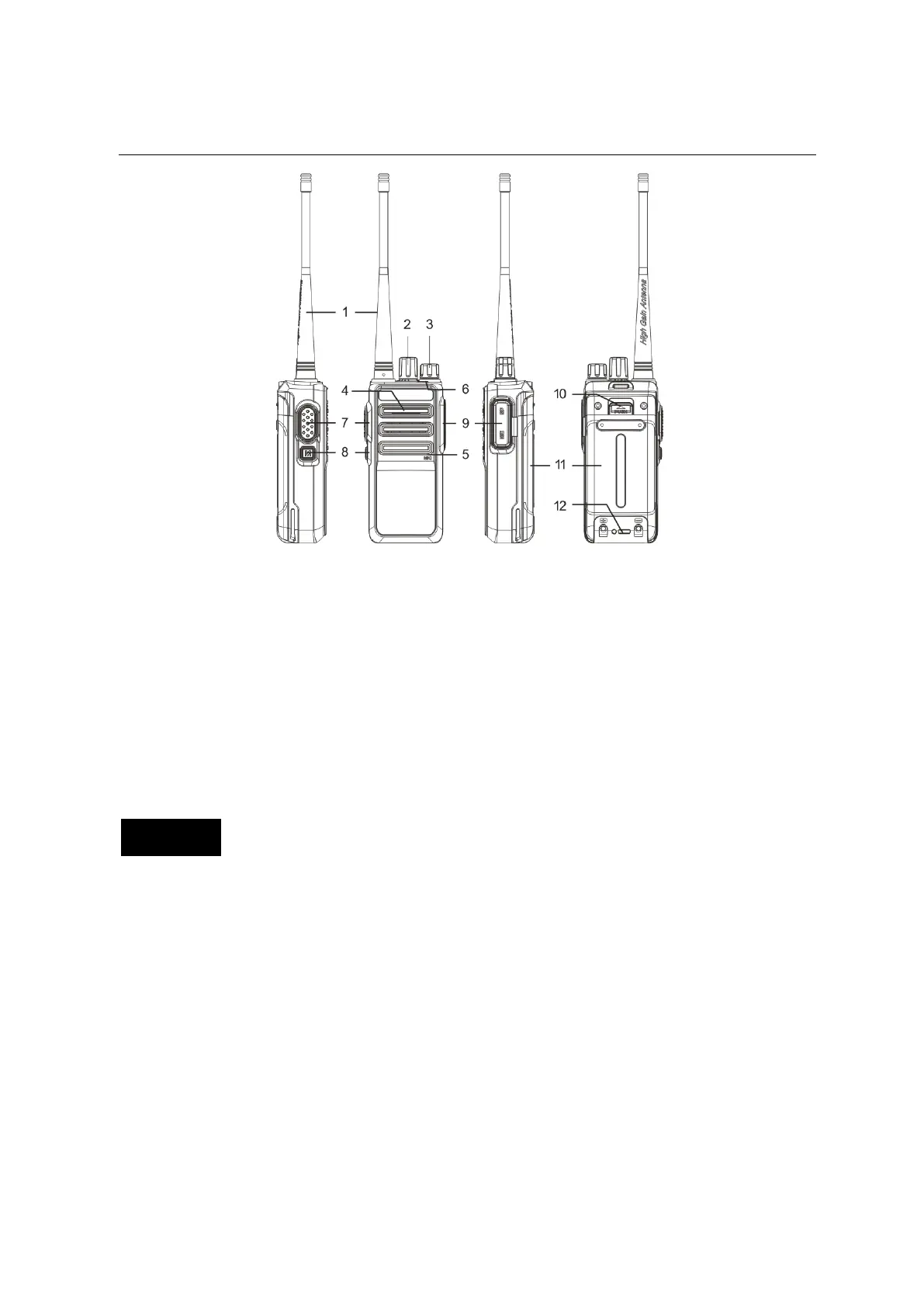 To communicate, all radios in your group must be set to the same channel. Briefly press the Side key 1 to enable the