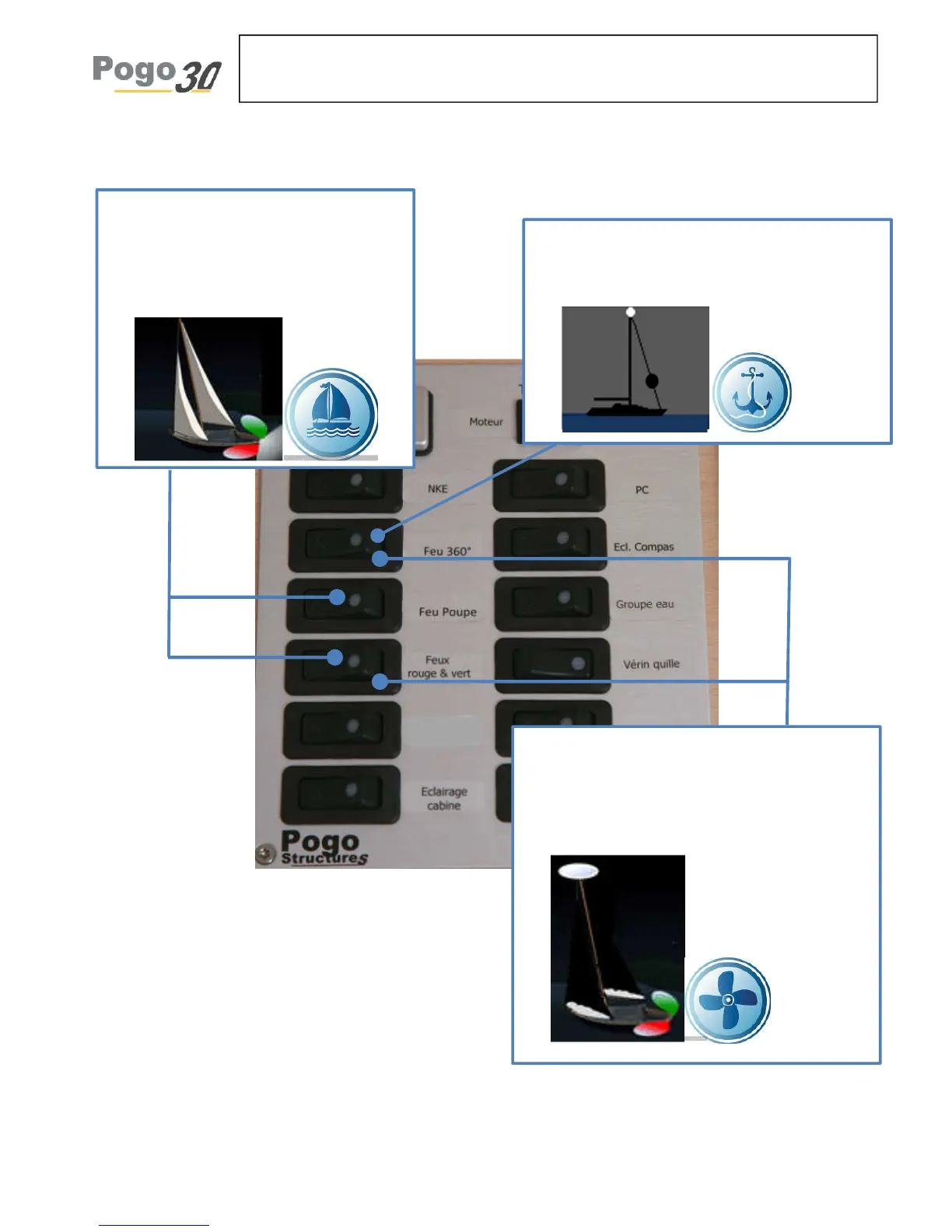 Pogo 30 - Standard Navigation Lights; Navigation Lights Under Sail; Navigation Lights When Anchoring; Navigation Lights Under Engine Power