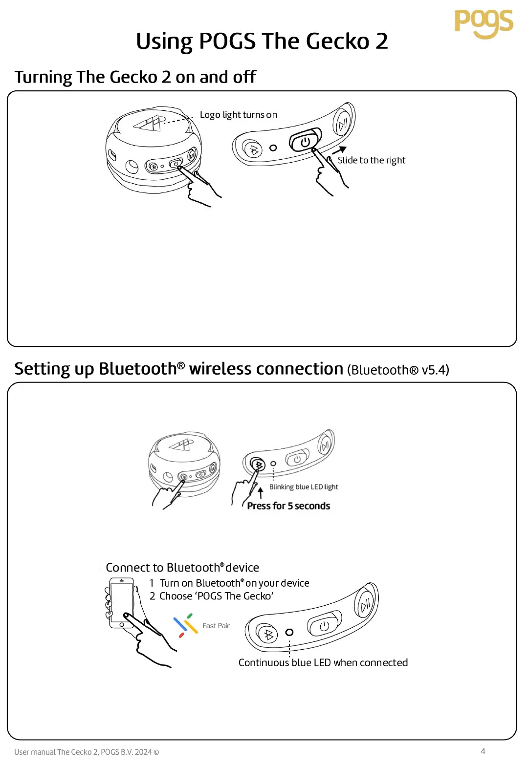 device, select ‘POGS The Gecko’ on your device. The blue Bluetooth
