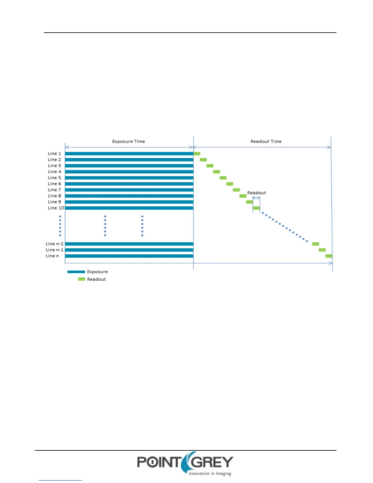 readout time. The exposure time for each line is the same, but the start and end times are staggered. Data readout for