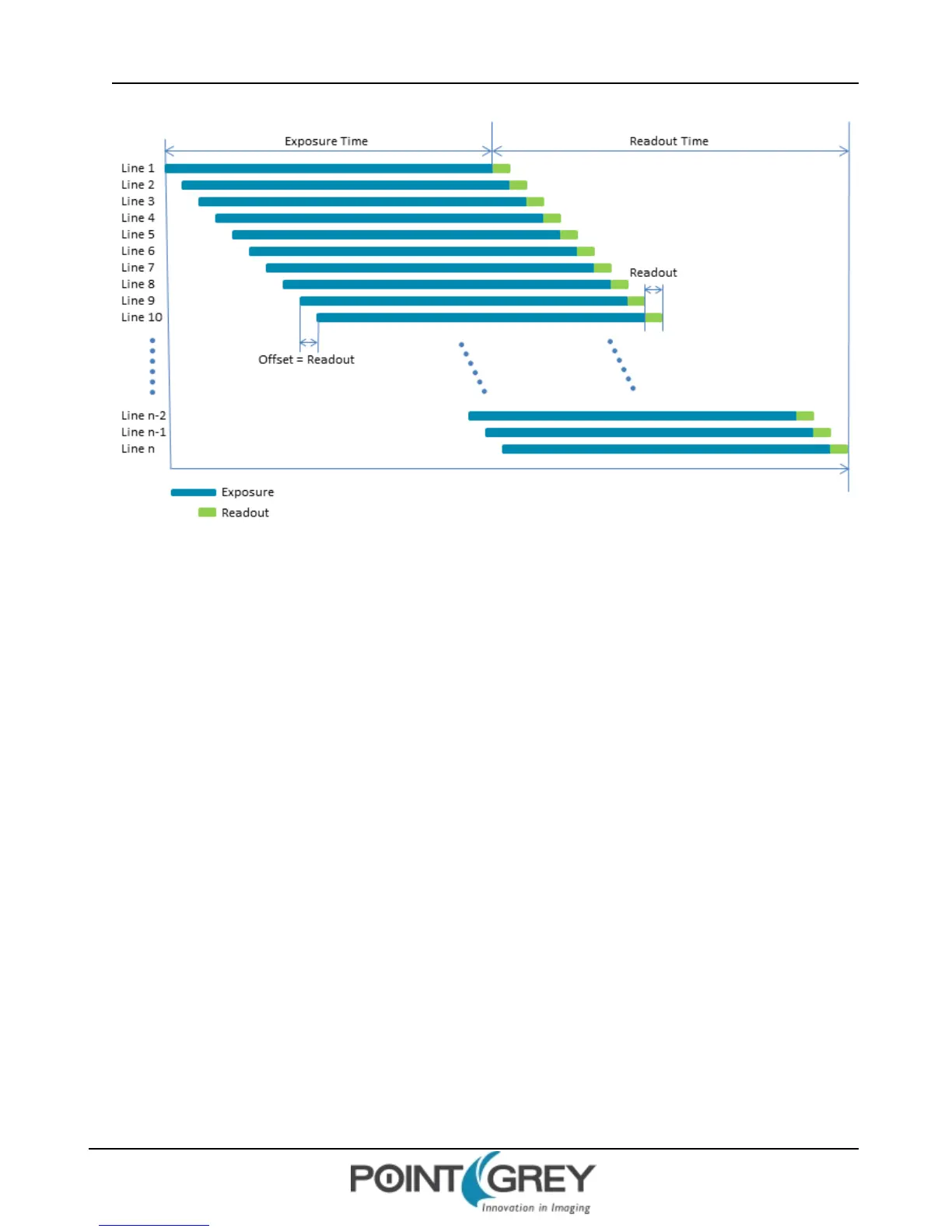 time but the end of exposure is delayed by the offset of the previous line's readout. The exposure time for each line