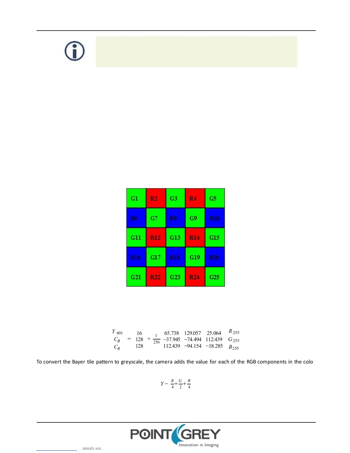 processed pixel to produce a single greyscale (Y) value for that pixel, as follows: