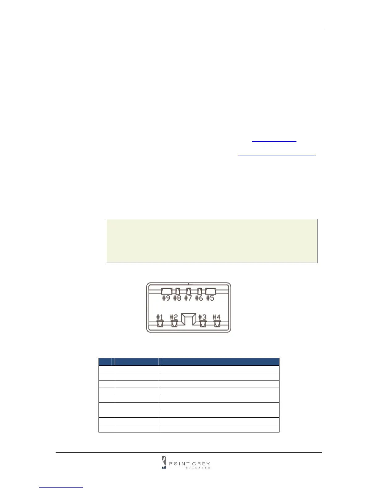 The camera has 2 standard 9-pin IEEE-1394b connectors (pin configuration shown below) that is