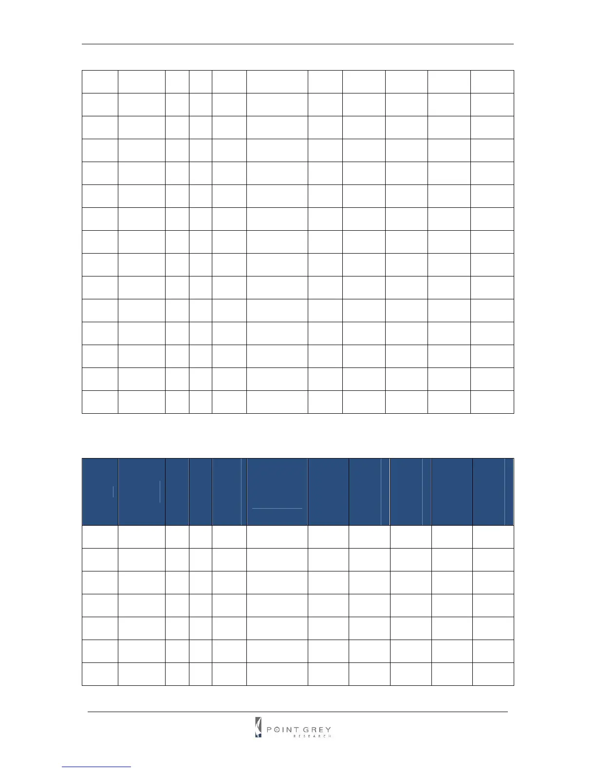 Table 9: Supported partial image (Format 7) video formats and modes for GRAS-20S4C