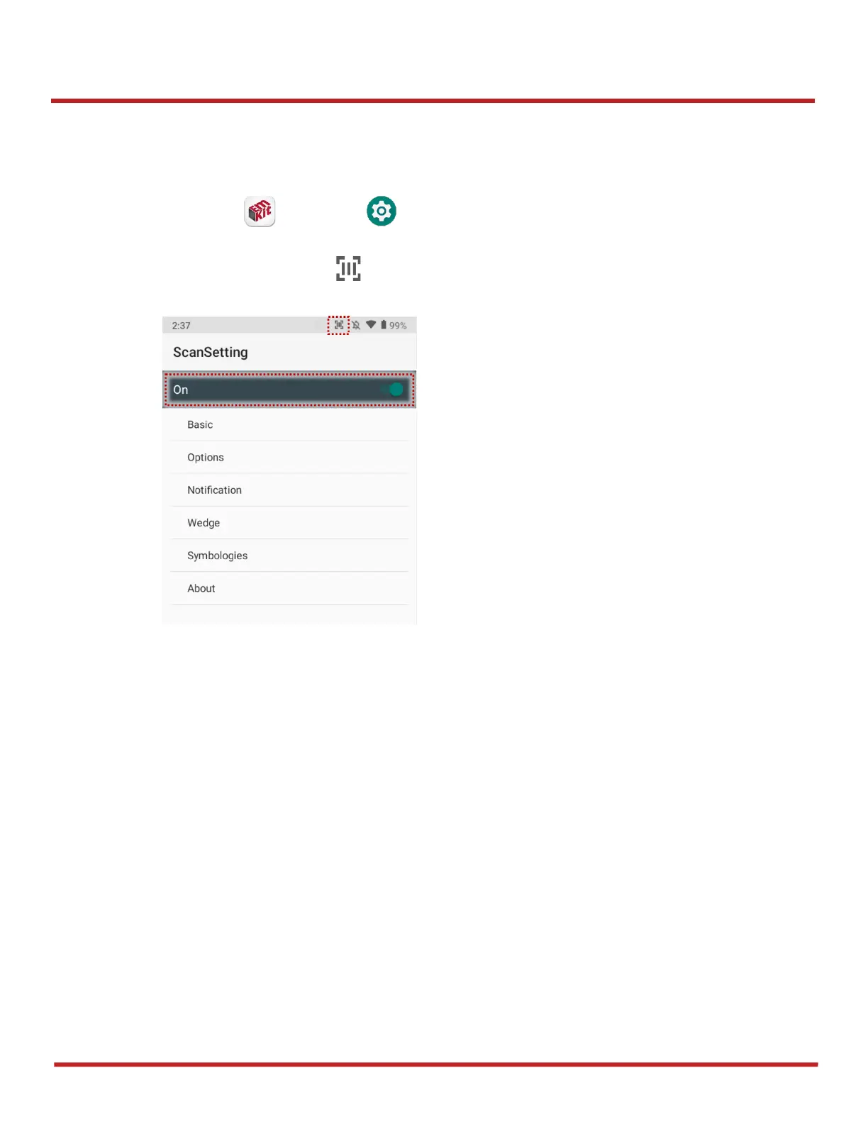 2. Tap toggle button to turn on/off the barcode scanner