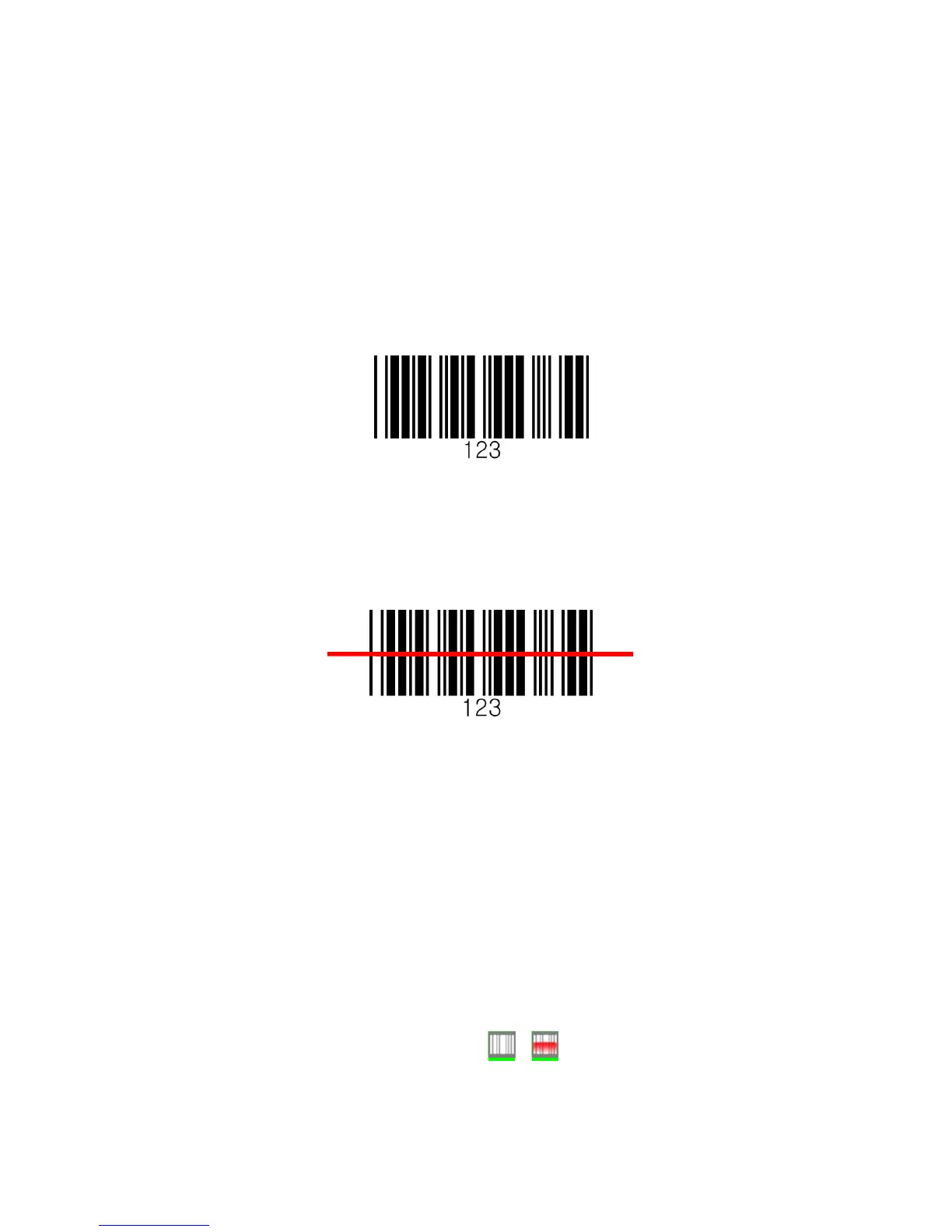 4. Center the aimer beam horizontally over the bar code and highlight all of the vertical bars of the