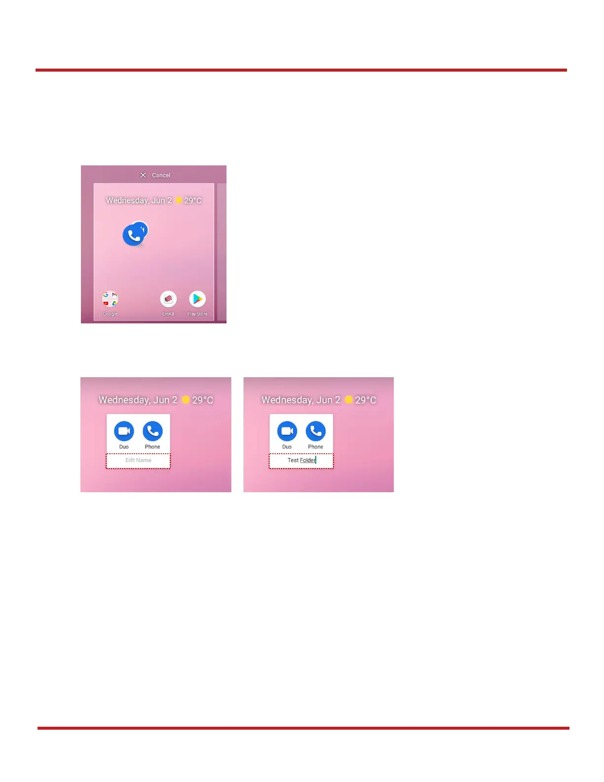 To change the folder name, tap the