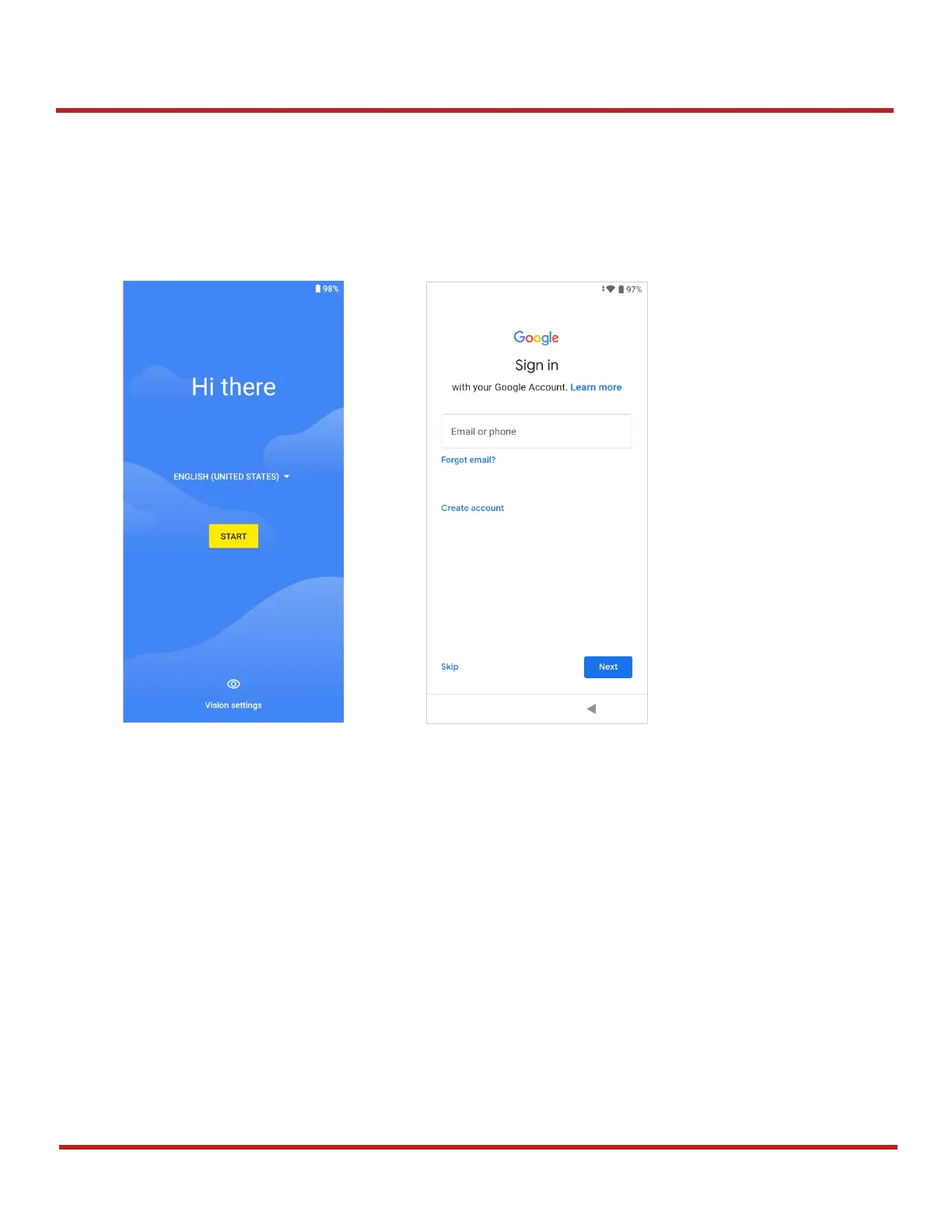 steps on the screen, set system language, Google account, Wi-Fi connection and copy the data, etc.