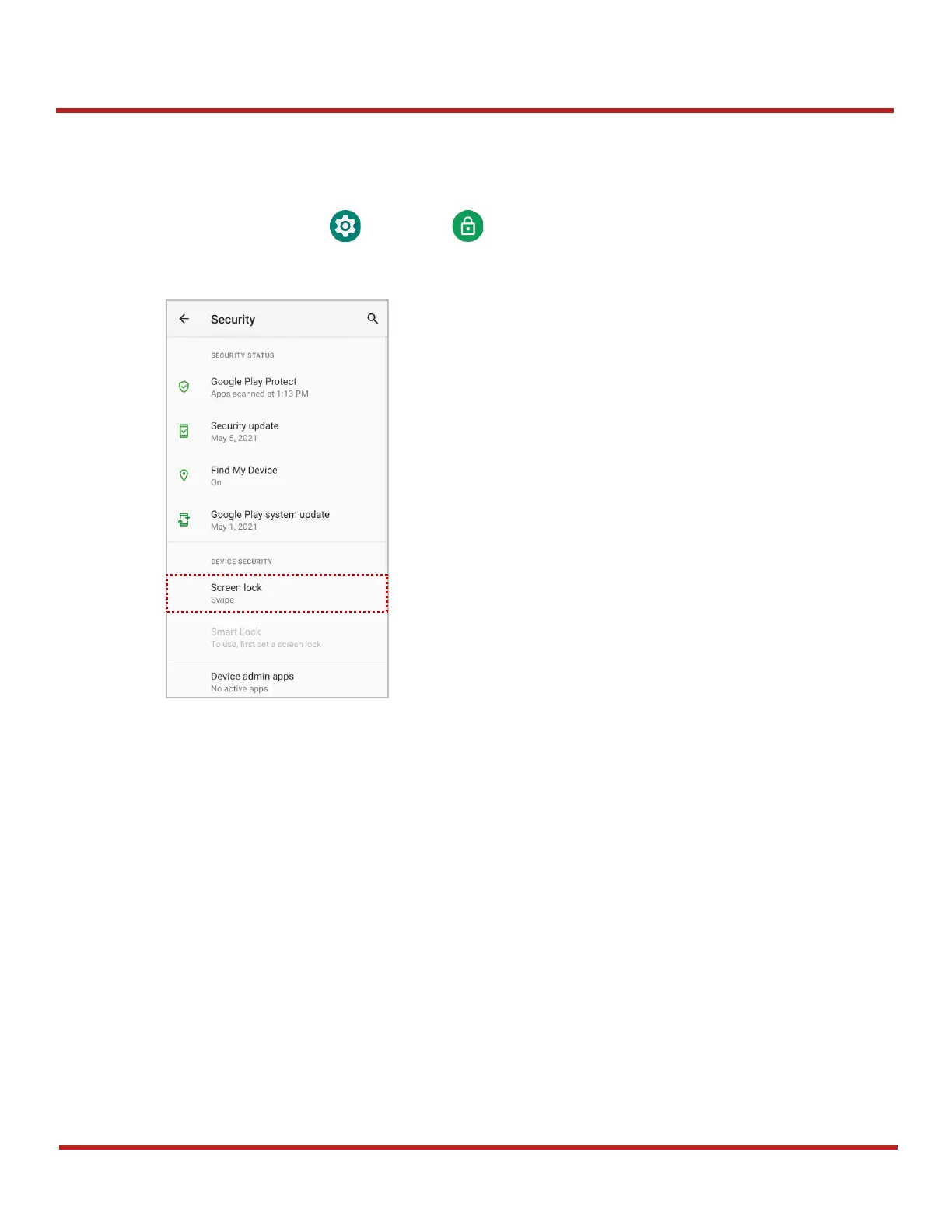 Protect the device from unauthorized personnel by setting up the screen lock.