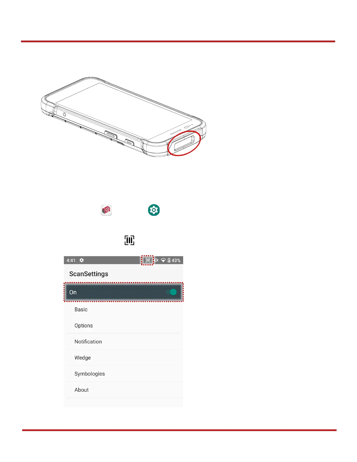 2. Tap toggle button to turn on/off the barcode scanner.