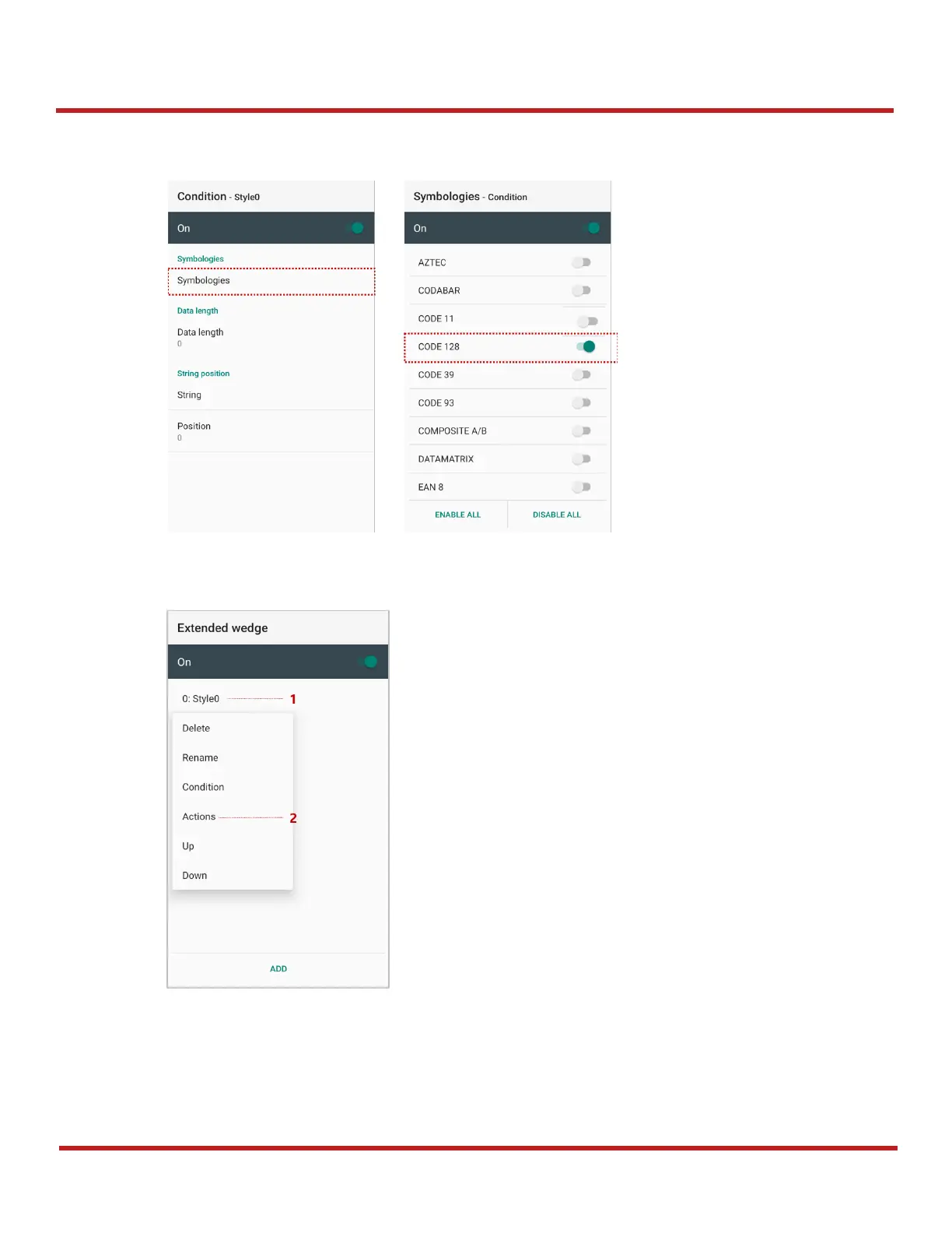 2. Tap Symbologies and select CODE128 among the symbologies.