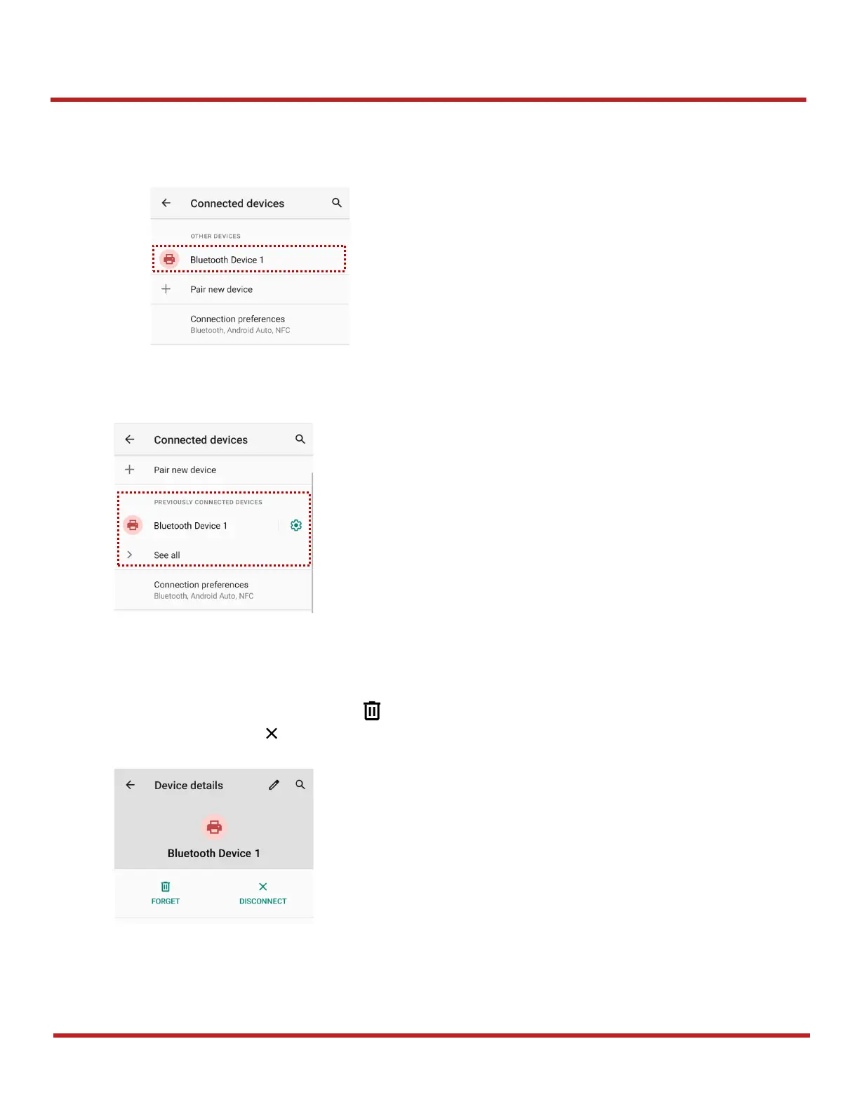 To connect a device previously connected, select the device name from the