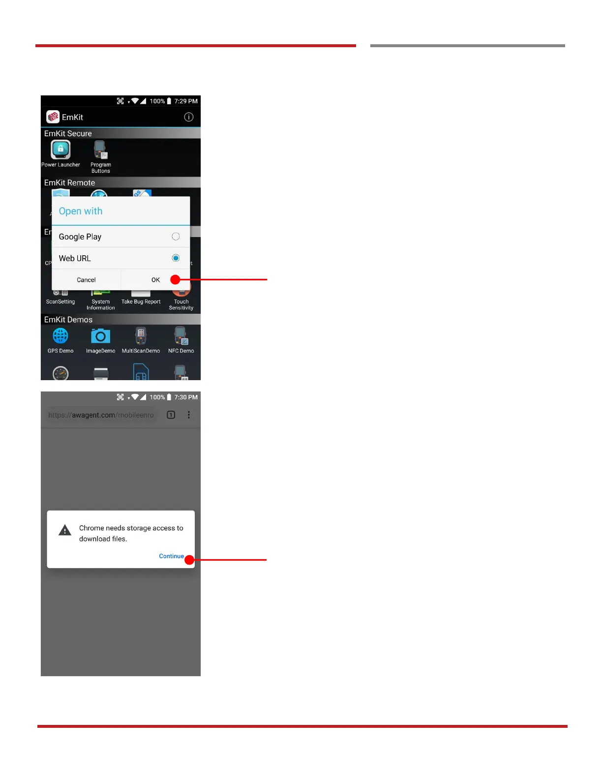 Web browser will download the apk file to the Point Mobile