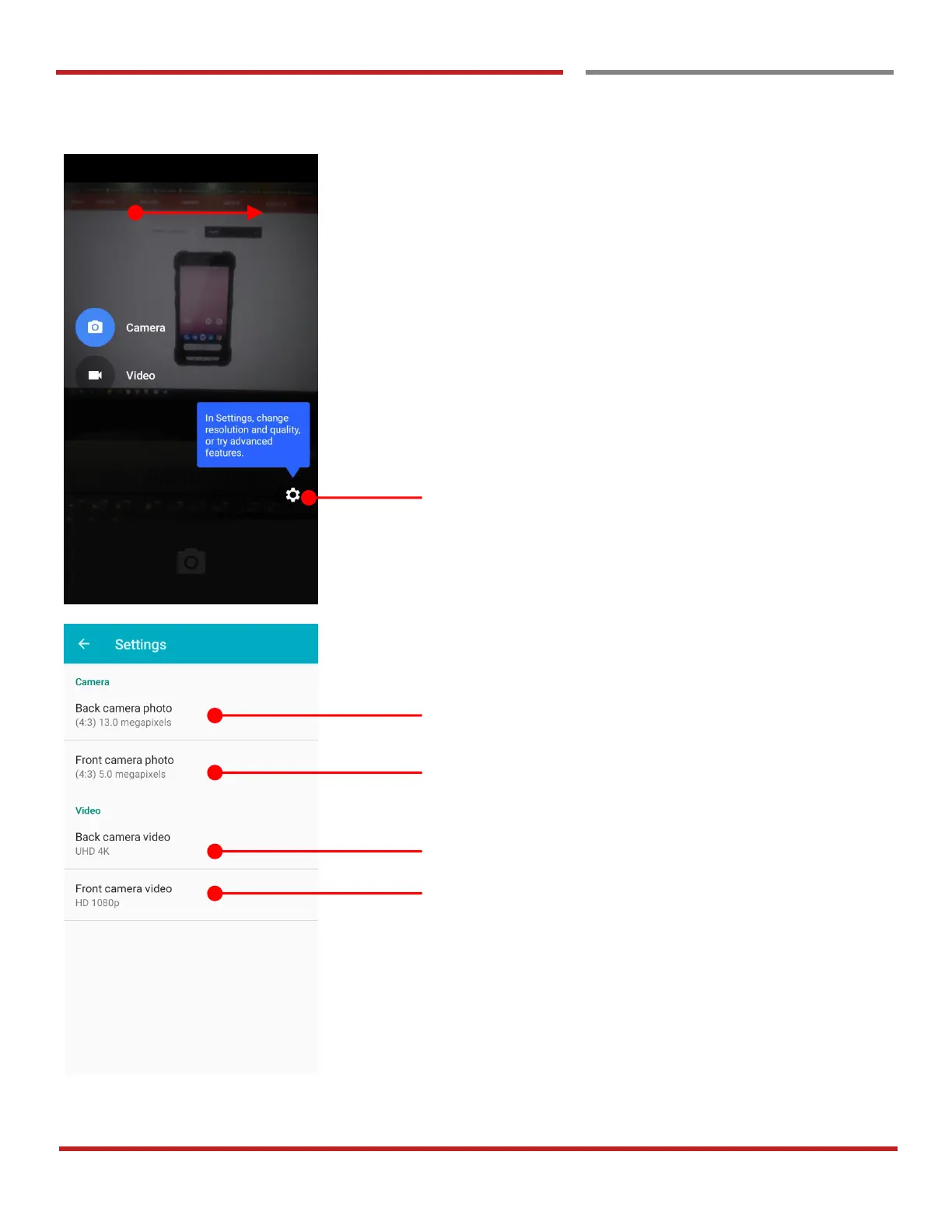 Swipe to change the Camera / Video mode or access to