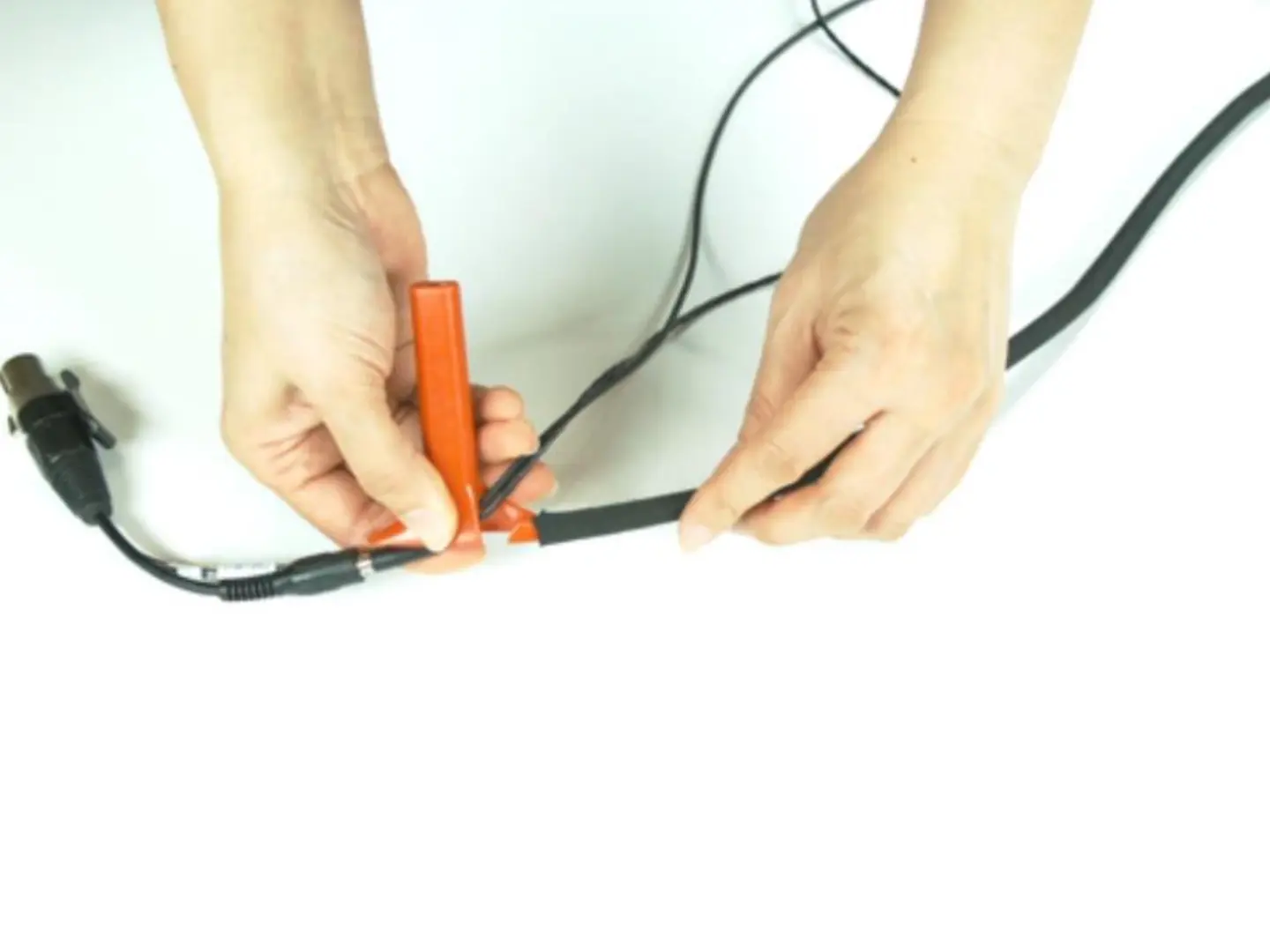 8) Gather both the microphone and earphone cables and insert into the