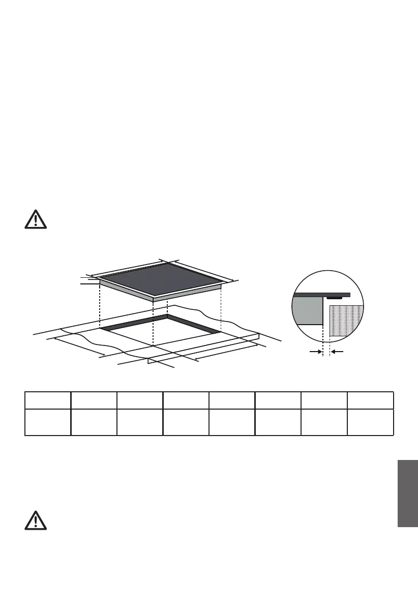 Bemærk: Sikkerhedsafstanden mellem kogepladens sider og