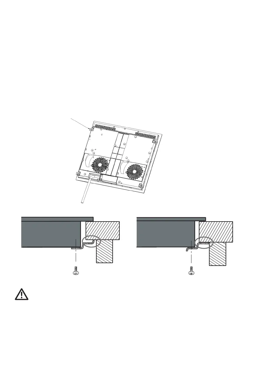 Når komfuret er sat i, skal du spænde det fast på bordpladen, ved at skrue