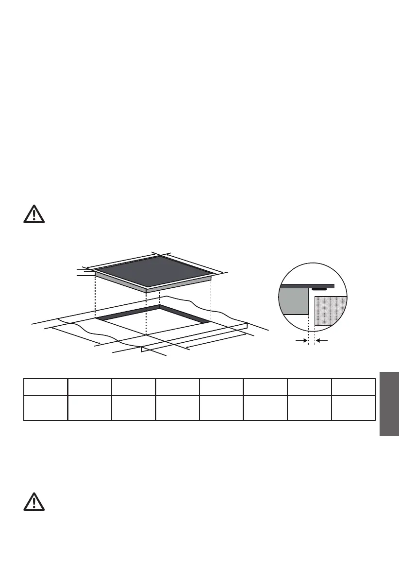 Huomautus: Turvaetäisuus lieden sivujen ja työtason sisäpintojen