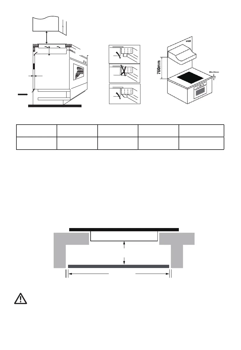 työtaso tuki näitä reikiä, kun sijoitat lieden paikalleen.