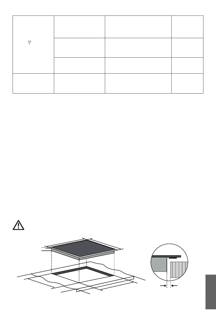 Obs: Säkerhetsavståndet mellan spishällens sidor och bänkskivans