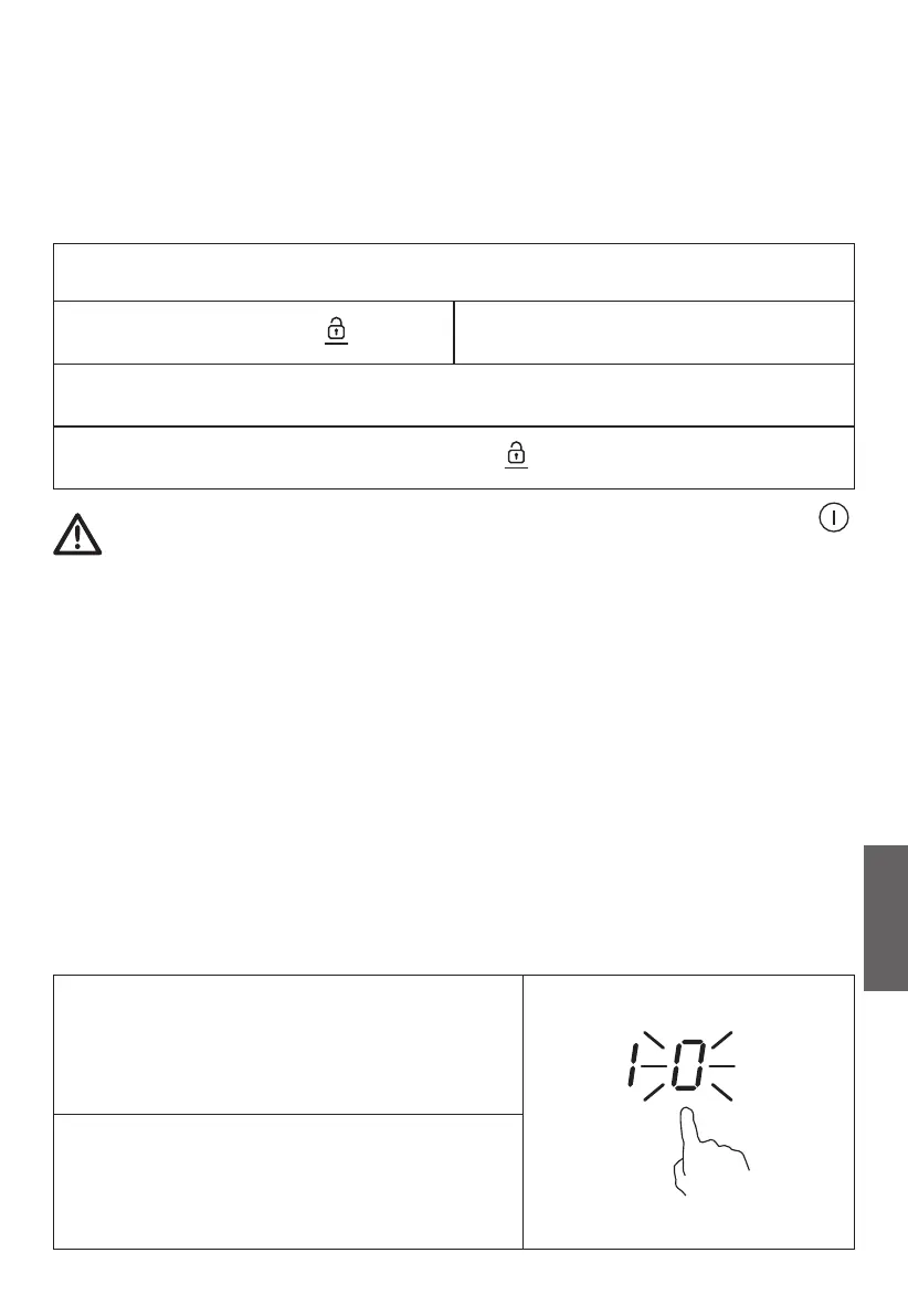 Kun liesi on lukitussa tilassa, kaikki, paitsi ON/OFF (Päälle/Pois)