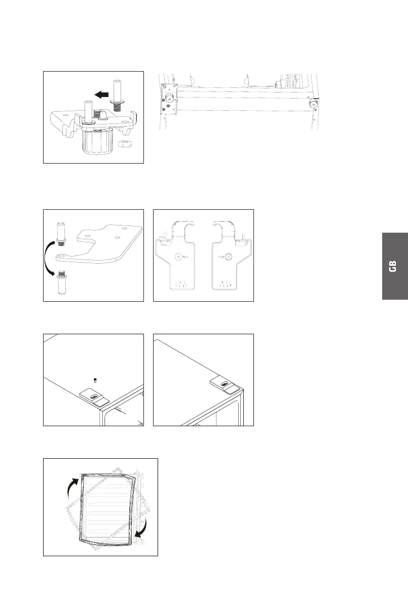 7. Unscrew and move the top hinge pin from the bottom side to the upper