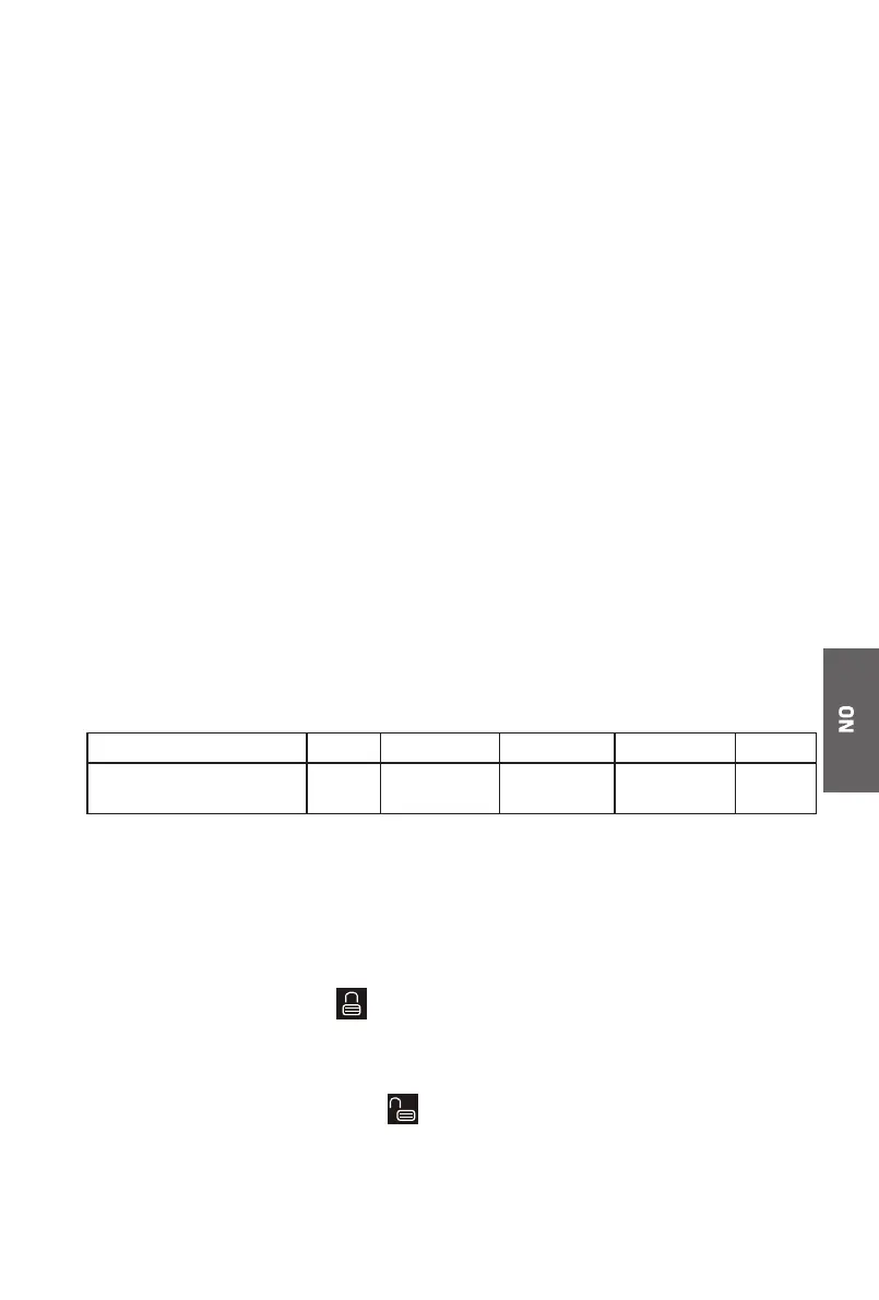 Når en knapp trykkes når låst, blinker låse- og låse opp-ikonet 3 ganger.