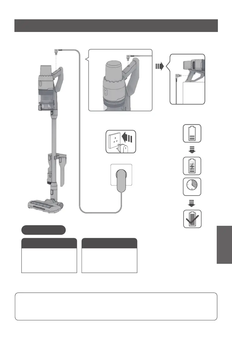 Sæt adapteren i ladestikket på apparatets håndtag. Når batteriet er ladet helt op, lyser alle