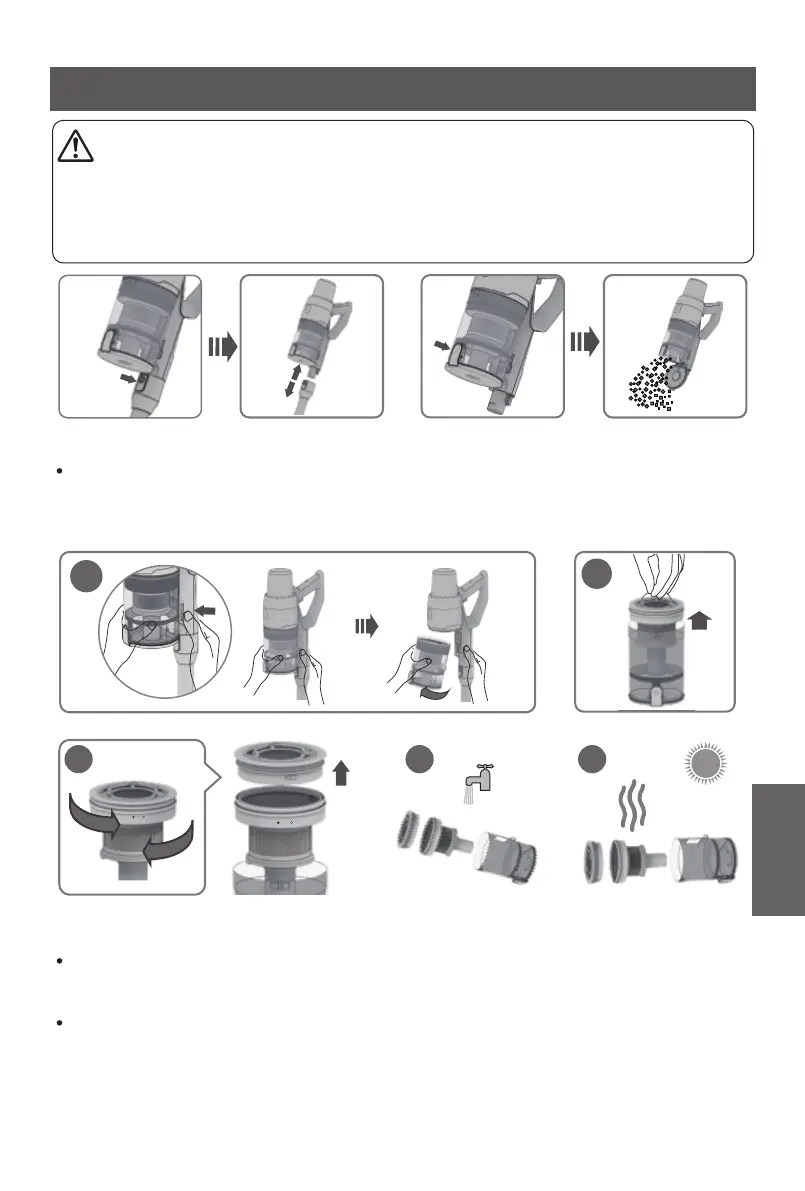 støvkoppen er helt tør, skal du sætte den i håndstøvsugeren igen.