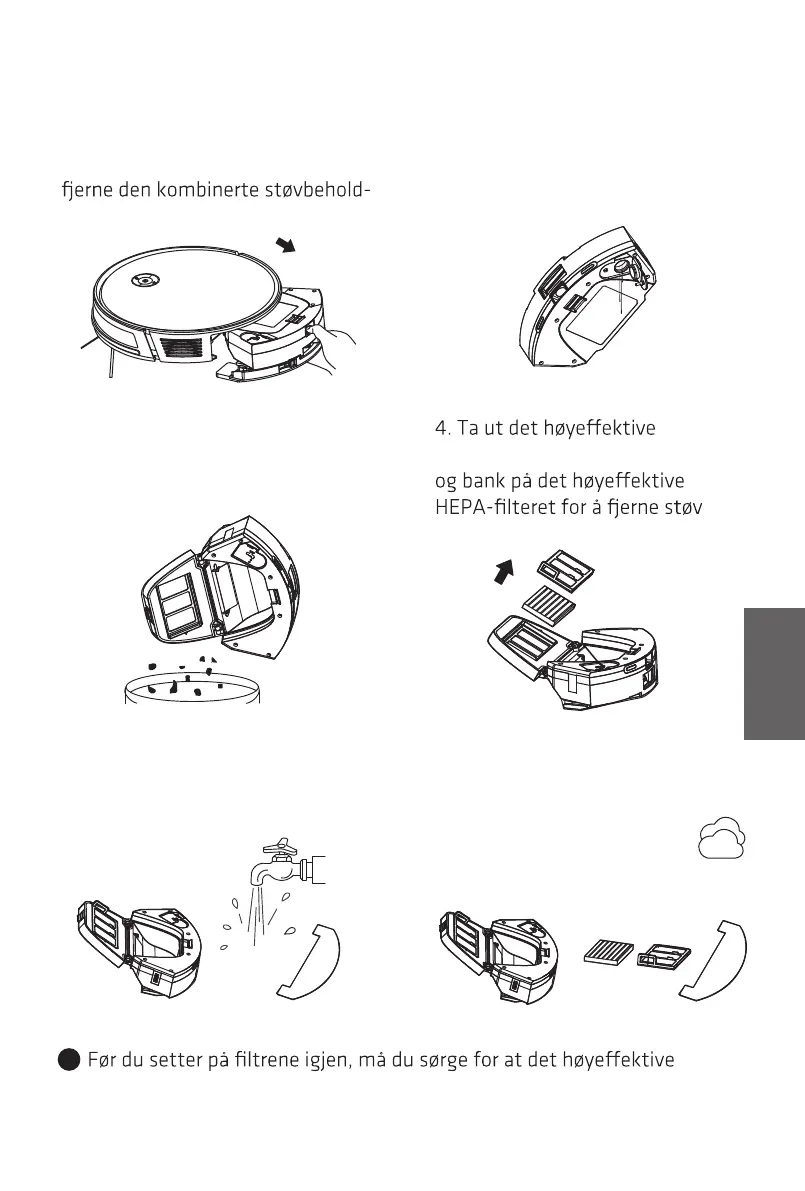5. Vask støvbeholderen, primær-